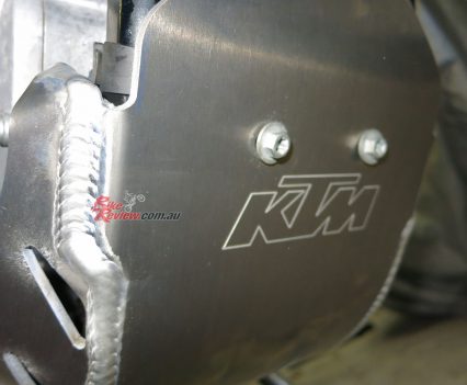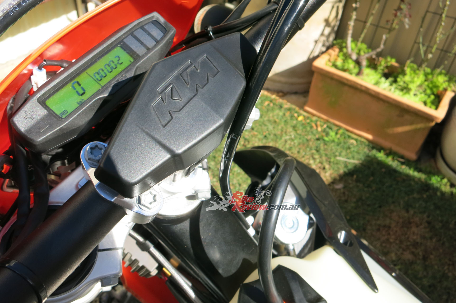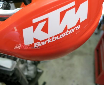 Our 350 has the KTM Power Parts bar riders, anti vibe mounts, thermo fan, Bark Busters and we have fitted Pirelli Scorpion Pro F.I.M tyres.