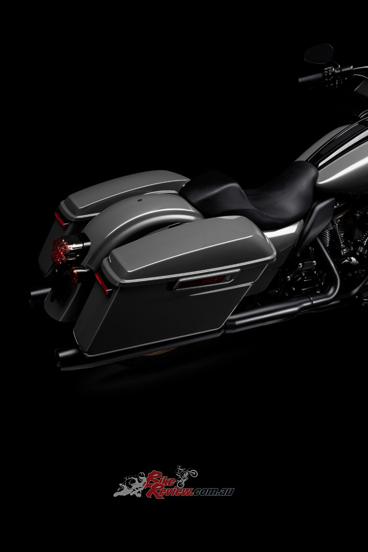 There are two paint options – Vivid Black or Gunship Gray. The front fender is trimmed for a sporty profile and lighter look and standard-length saddlebags replace the extended bags on Street Glide Special model. A Heavy Breather intake with forward-facing exposed air cleaner element reinforces performance-first styling, while the new solo seat gives the Road Glide ST a lean and aggressive look.