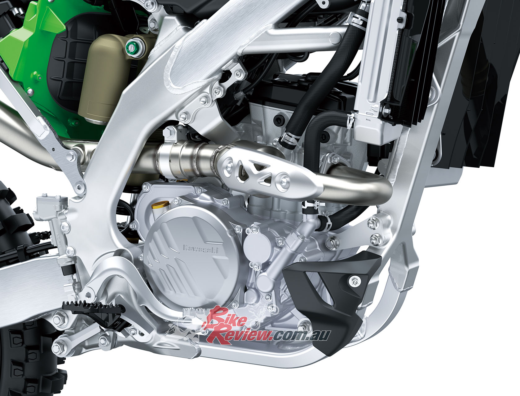 On the mechanical front, Kawasaki’s engineers have extracted even more power and torque from the already hi-tech engine across the entire rev range. The hydraulic clutch has a direct feel and, thanks to the coned-disc springs, has less drag, lighter actuation and more control when half-clutching in difficult terrain. Less play as the clutch heats up during heavy use results in a consistent feeling and an action the rider can rely on.