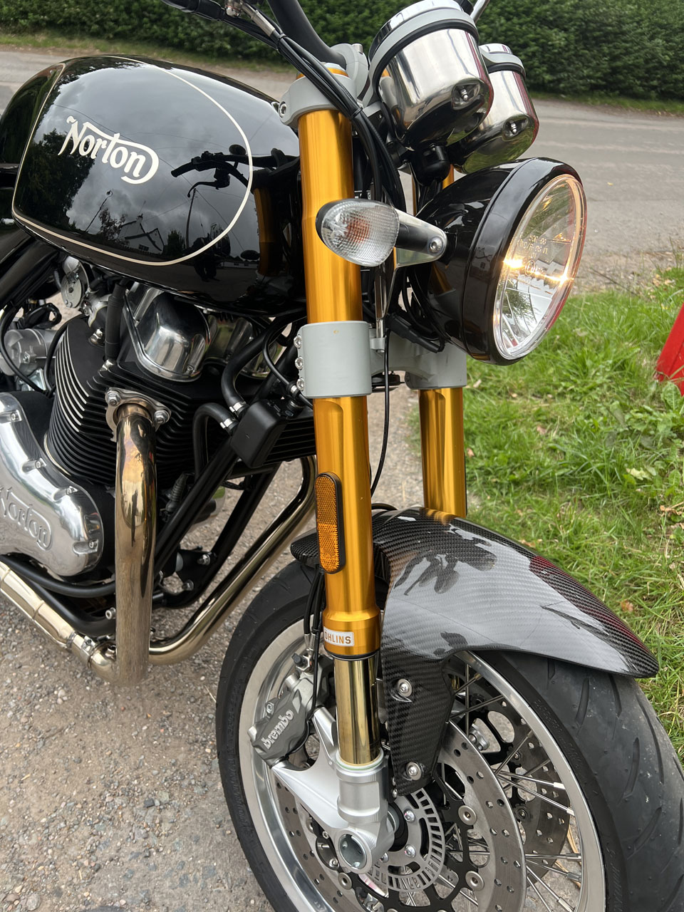 Norton has done a fantastic job of encapsulating the classic feeling of a motorcycle, still air-oil-cooled, still pushrod rod and still has those gorgeous twin shocks with remote reservoirs. But there are glimpses of the future, like being dressed with carbon-fibre parts, electronic fuel injection, a full Brembo braking system and that beefed-up Ohlins suspension. The bike is simply a work of art; don’t even get me started on that tail section.