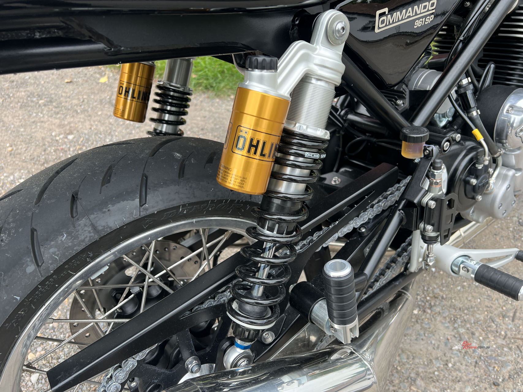 Through the turns is a different story; the Commando tracks confidently, confirming my hypothesis that these Öhlins have been set up to perform better under load. The way the mass tips into the corners just has this sporty nature that doesn’t match the retro nature of the bike at all. You would easily embarrass a few riders through the twisties on this bike.