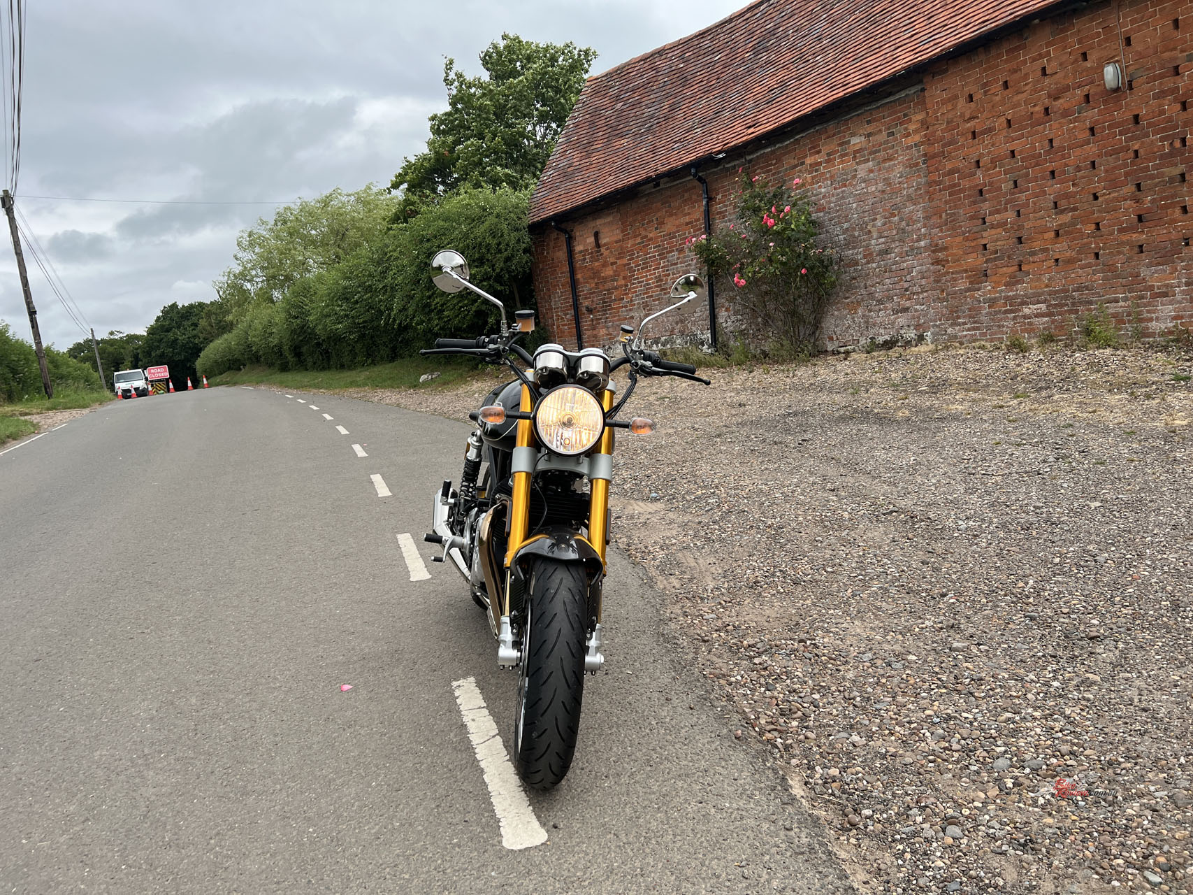 I only have the bike for a very short test to ride around the local country roads, so I’m incredibly eager to throw a leg over the bike for the first time. I’m given the opportunity to choose between the SP and CR. While I can’t look past a café racer, there’s something about the black and gold scheme of the SP that ties me in; it probably has something to do with the JPS Norton F1 being my dream motorcycle.