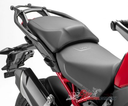 Engine: V4 Granturismo, V4 90°, four-valves per cylinder, counter-rotating crankshaft, liquid-cooled, 1158cc, 83 x 53.5mm bore x stroke, 14.0:1 comp, EFI with 46mm elliptical throttle-bodies and RbW system, six-speed gearbox, wet multiplate clutch, stainless-steel exhaust, chain drive.