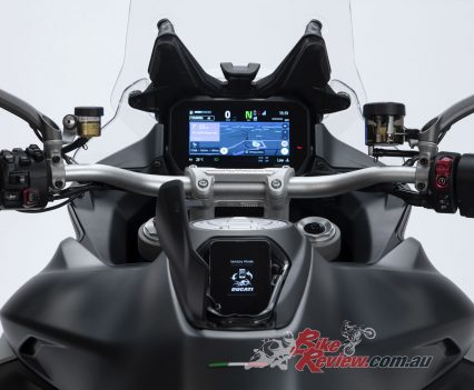 Dash & Electronics: Riding Modes, Power Modes, ABS Cornering, Ducati Traction Control, Ducati Wheelie Control, Daytime Running Light, Ducati Brake Light, controlled through a 7.5in TFT.