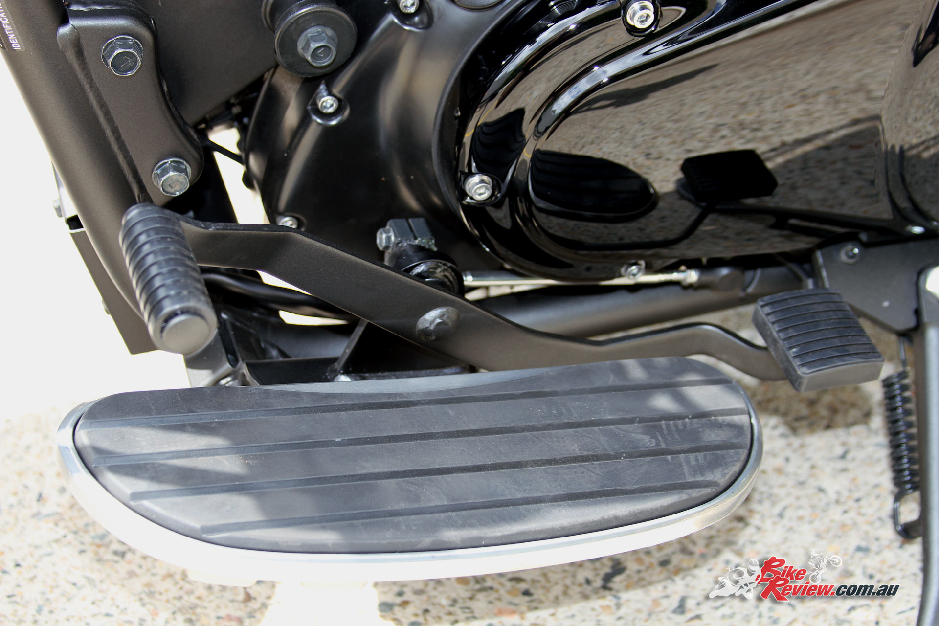 Of course for a cruiser it’s easily manageable on the move, even at low feet-up speeds, and the floorboards with forward controls are comfortable and not too wide. Shifting through the gears is easy and natural both up and down, and the clutch action was light enough not to draw any attention.