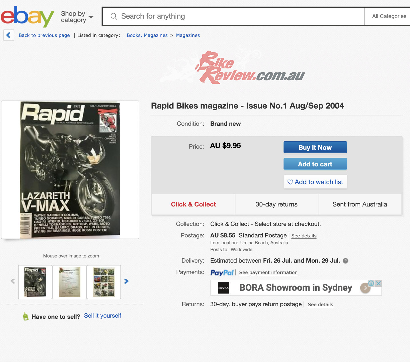 Great news for fans of our old magazines, Rapid Bikes, Knee Down and Used & Classic Bike Enthusiast. We have finally cleaned out our old warehouse and we have sorted out the new old stock left over and the good news is, there are limited numbers of every issues available on our new eBay Store, all for $9.95! Postage is $8.55 Australia-wide for the first mag and each extra one added to your purchase is $3 postage. International post is available and calculated as you shop.