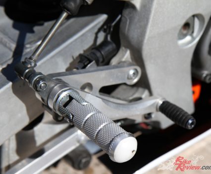 Suspension: Conventional semi adjustable forks, remote reservoir fully adjustable Monoshock