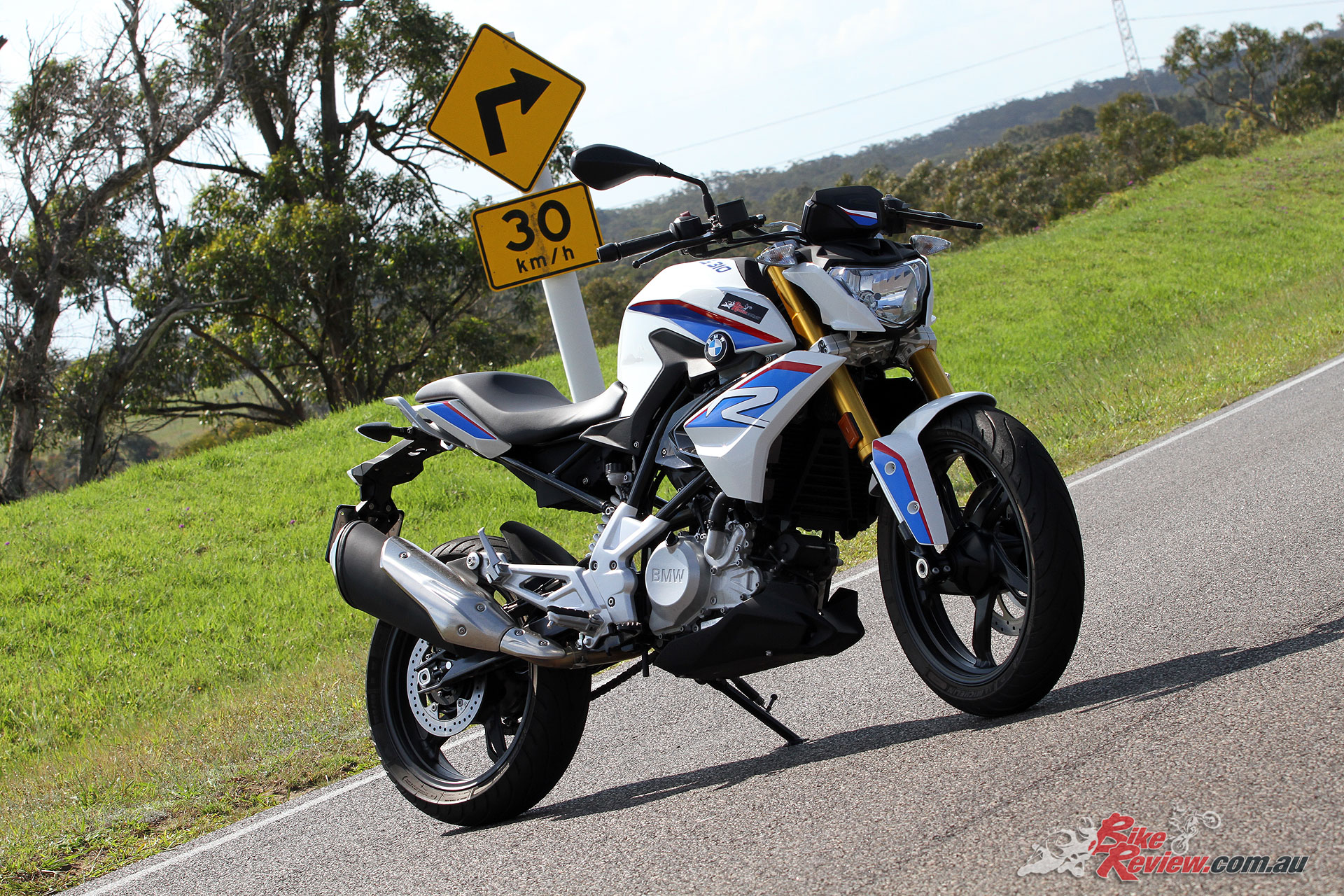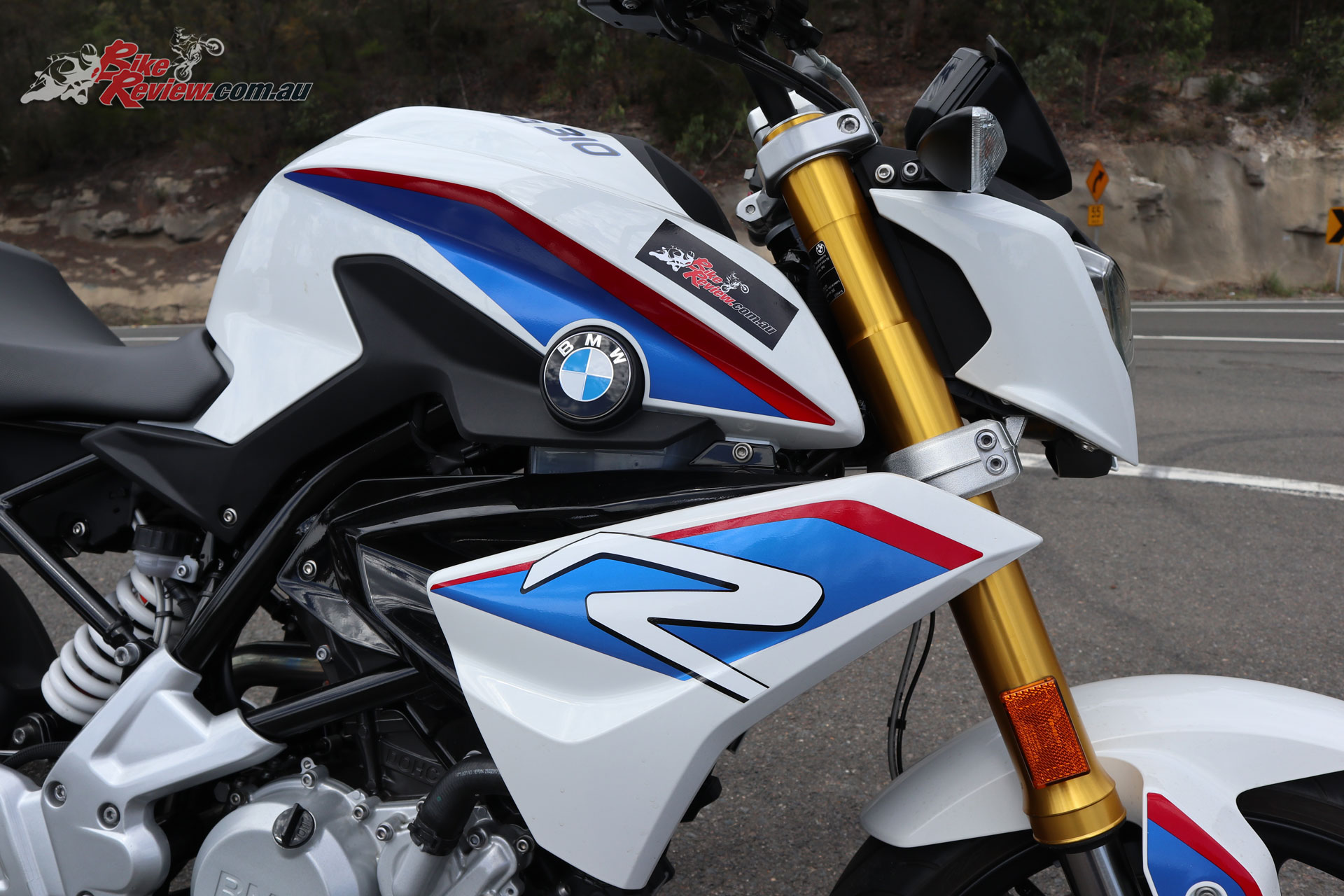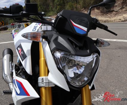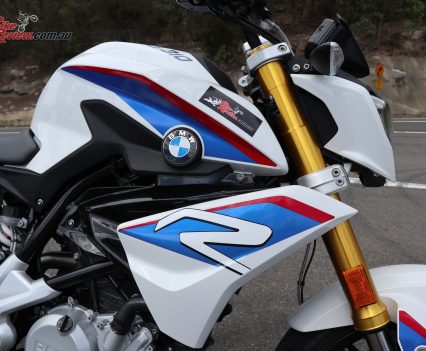 The G 310 R is a fun little bike through the twisties, offering a confident, no surprises attitude for learner riders to gain experience. The suspension is a good all-round package and quite a surprise.