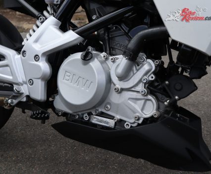 The G 310 R 313cc DOHC reverse-cylinder four-stroke engine is great mid-range but needs more off the bottom and some gearbox and clutch refinements, it also fuels very lean, contributing to stalling off lights.
