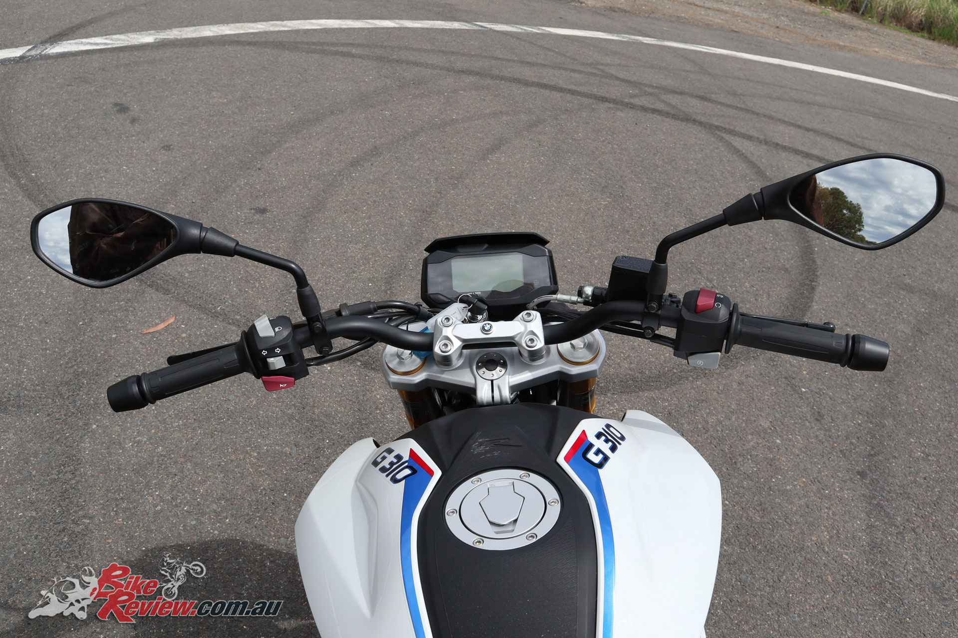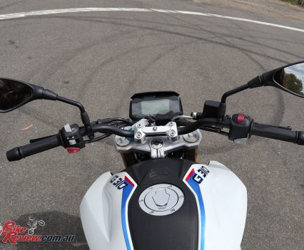 The G 310 R has conservative geometry but the wide ‘bars give good leverage, a great set up for a learner.