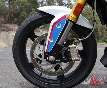 I found myself stalling the G 310 R for the first few days, again, due to the low compression engine, probably big ports and a light crank, feeding the clutch out without what initially seems excessive rpm results in an abrupt stall. Once I got used to it, all was OK, but for our market a high comp version would have been welcomed, particularly now that lane filtering is legal and you want some initial punch off the lights.