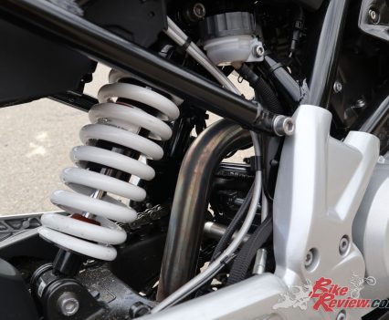 It makes the bike agile and easy in heavy traffic when it is upright, great for learning, yet stable and safe at higher speeds in the twisties. Without the wide ‘bars, the stability would make the bike a tad too slow to steer mid-turn should the need arise, such as a wet patch, large bump or other obstacle. On the proving ground where we did our photoshoot and some performance testing, the steering was precise and predictable, if a little one-line-once committed, again, it’s a conservative set-up, which is not a negative statement in this instance.