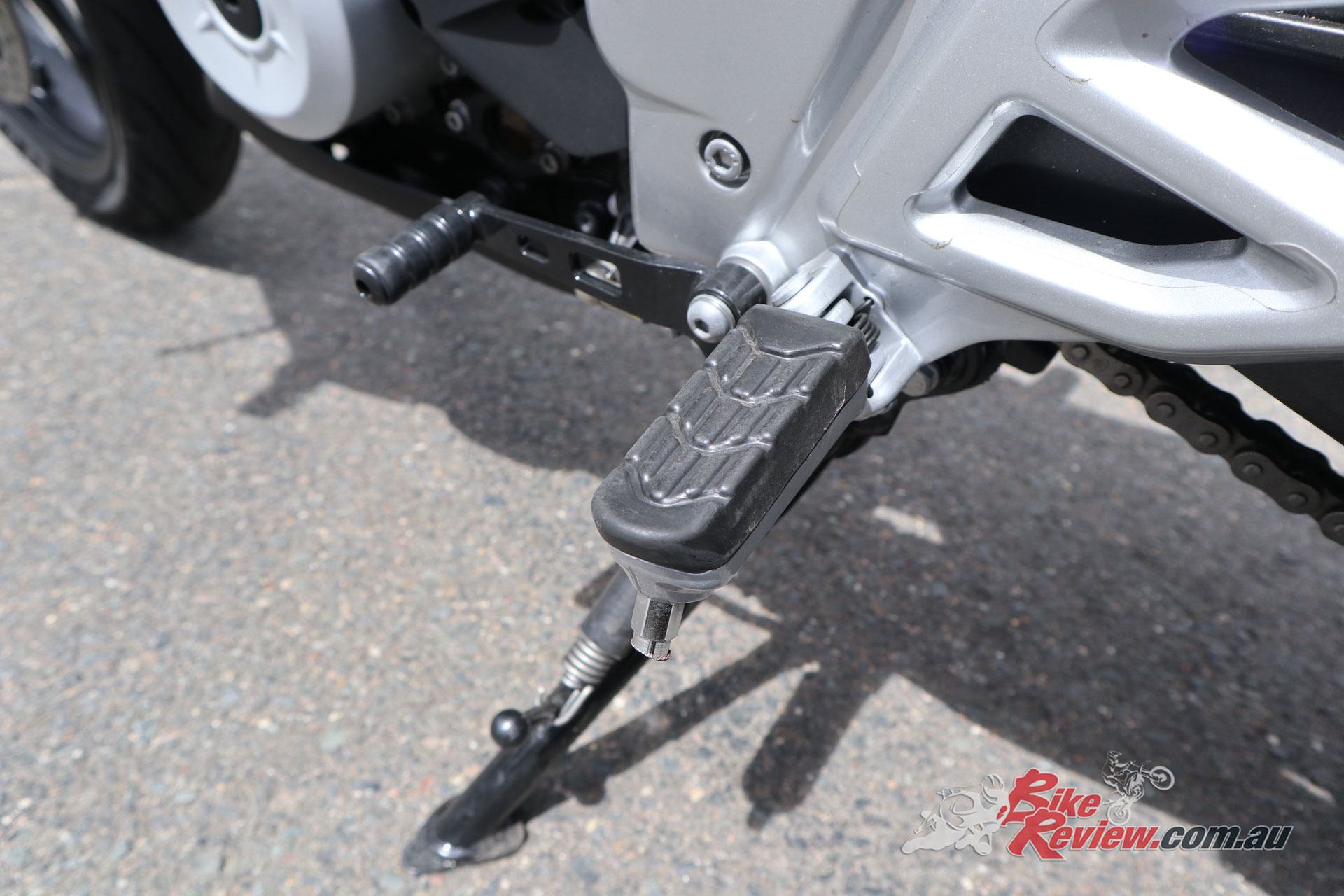 The rear brake pedal, as mentioned, is massive and impossible to miss. The rear brake is good, offers good control and feel for a rear brake and was handy around town and in balancing the bike.
