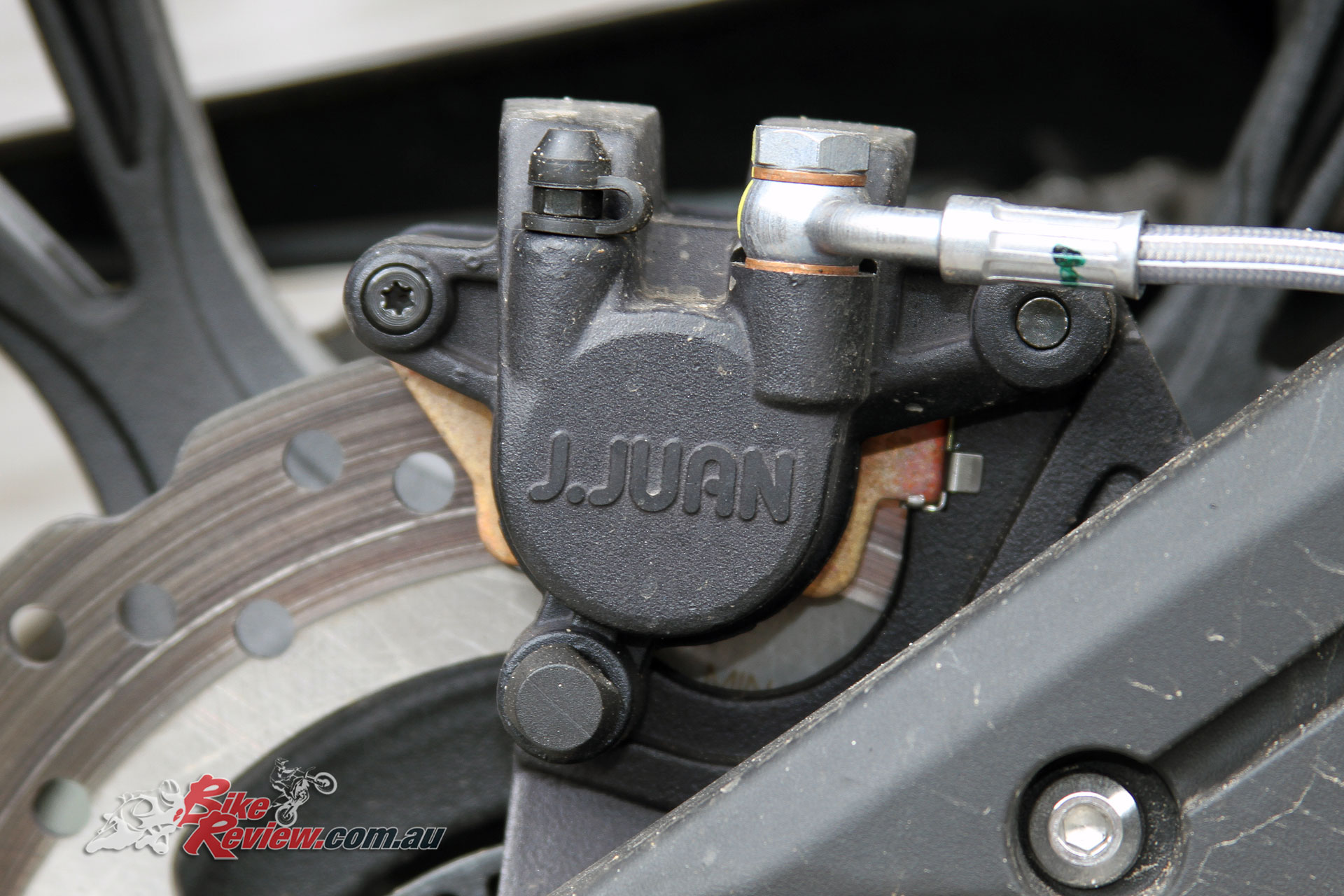 Trail braking into corners was tricky on the J.Juan ABS equipped press bike we tested and I would have preferred less lever travel and a more intimate feel to optimise brake modulation, something that is important for a new rider, too, as you really need confidence in the front of the bike.