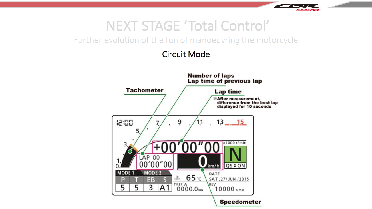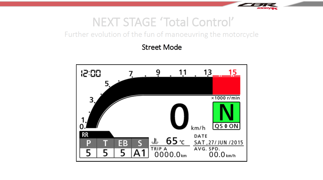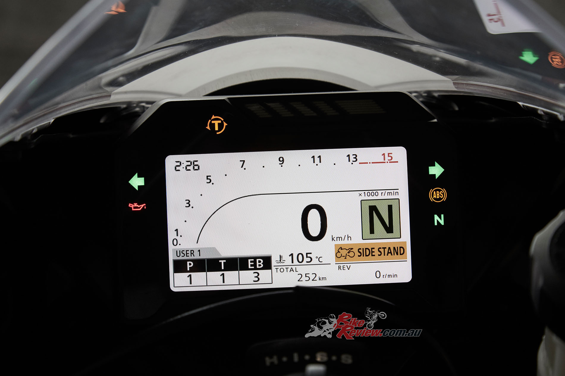 Other goodies include a super trick full TFT full colour LCD display dash with the menu navigated from the left switchblock. There is a Street Mode and a Circuit Mode (as well as mechanic mode).