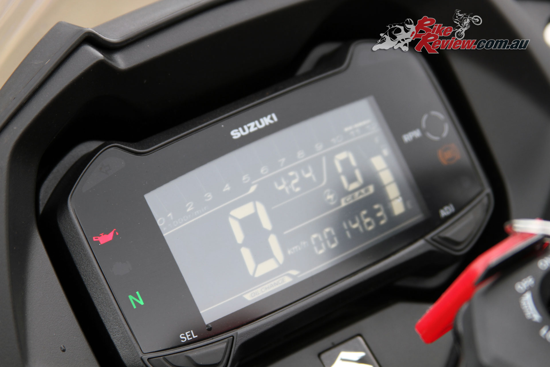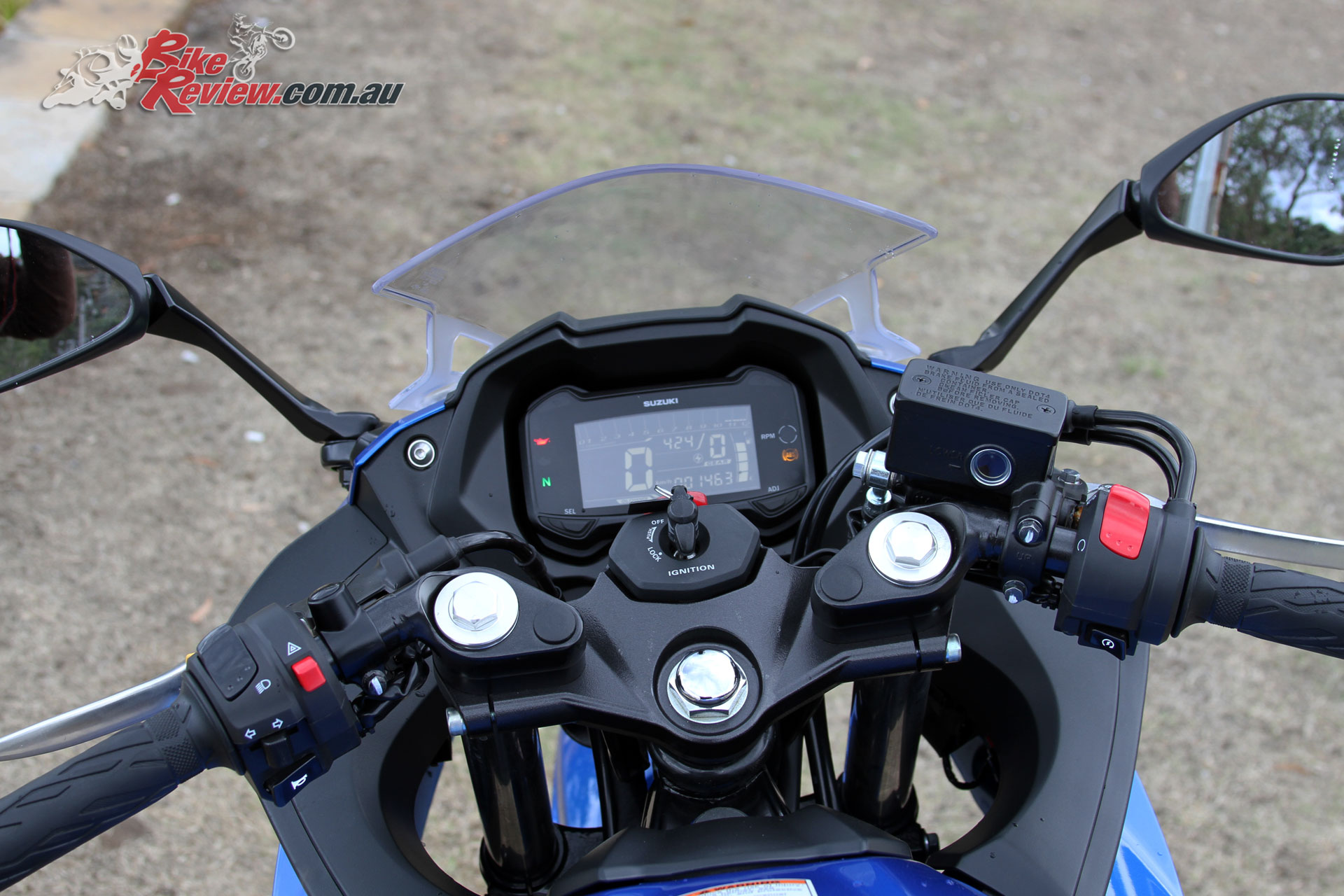 The GSX250R offers an LCD display with gear indicator and clearly visible indicator lights, while vision through the mirrors is good if not amazing