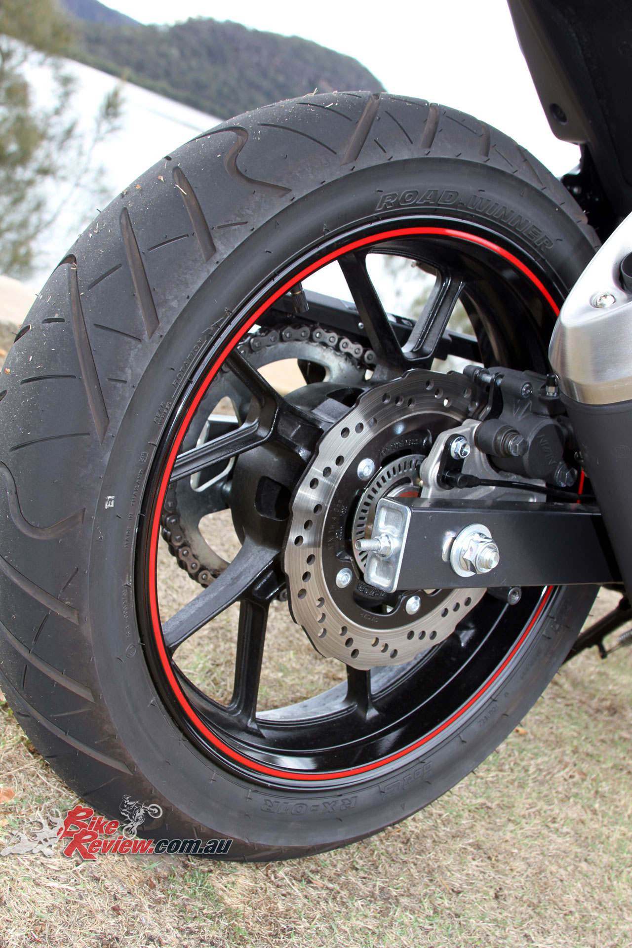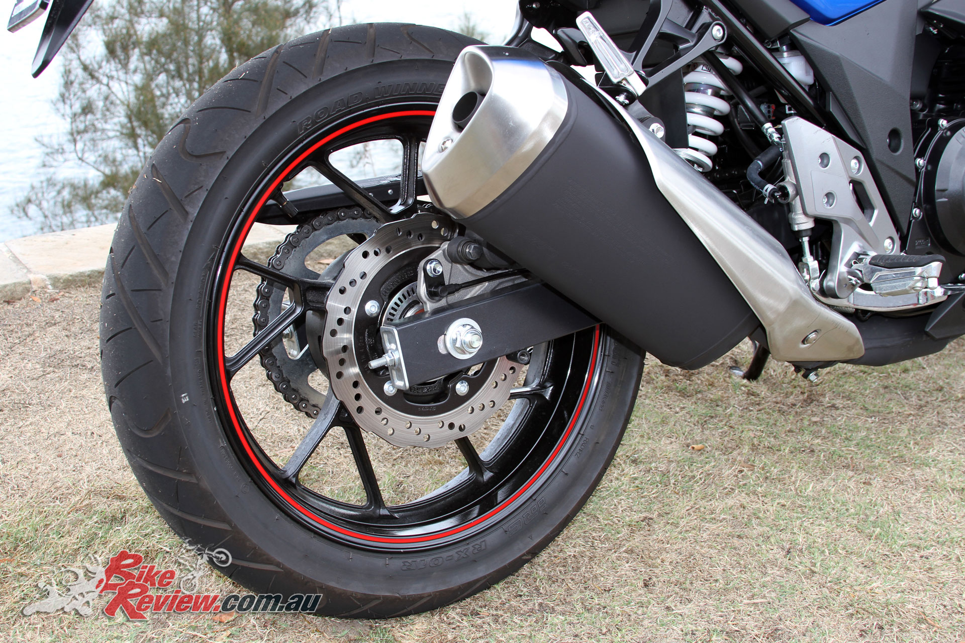 Wheels & tyres: Ten-spoke wheels, IRC RX-01F/R tyres, 110/80 – 17, 140/55 – 17