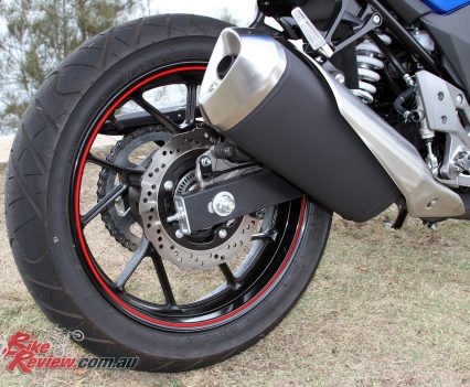 The rear brake is a Nissin caliper on petal disc, but isn’t too strong or sensitive, making for an easy experience for learners. It also reduces the occurrence of unnecessary rear ABS activation that can plague bikes with more rear bite.