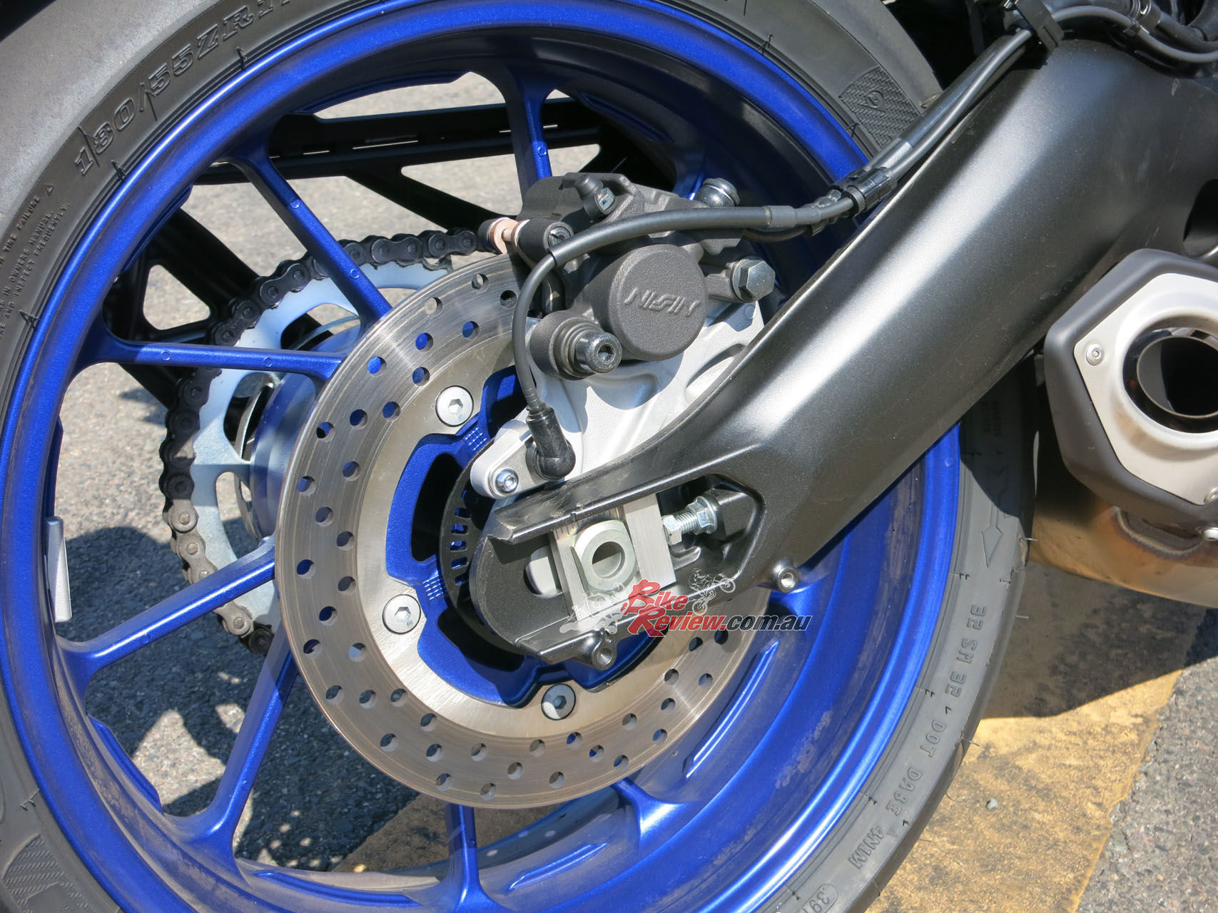 Braking is by 298mm floating stainless steel rotors and radial-mount four-piston calipers. Sintered pads are fitted standard and the rear disc is a 245mm unit with a pin-slide caliper. Wheels are 10-spoke alloy.