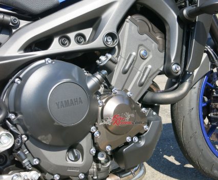 Engine: 847cc liquid-cooled inline three-cylinder four-stroke, 78 x 59.1mm bore x stroke, 31mm IN and 25mm EX valves, 11.5:1 compression, RbW (YCC-T), Modes, QSS