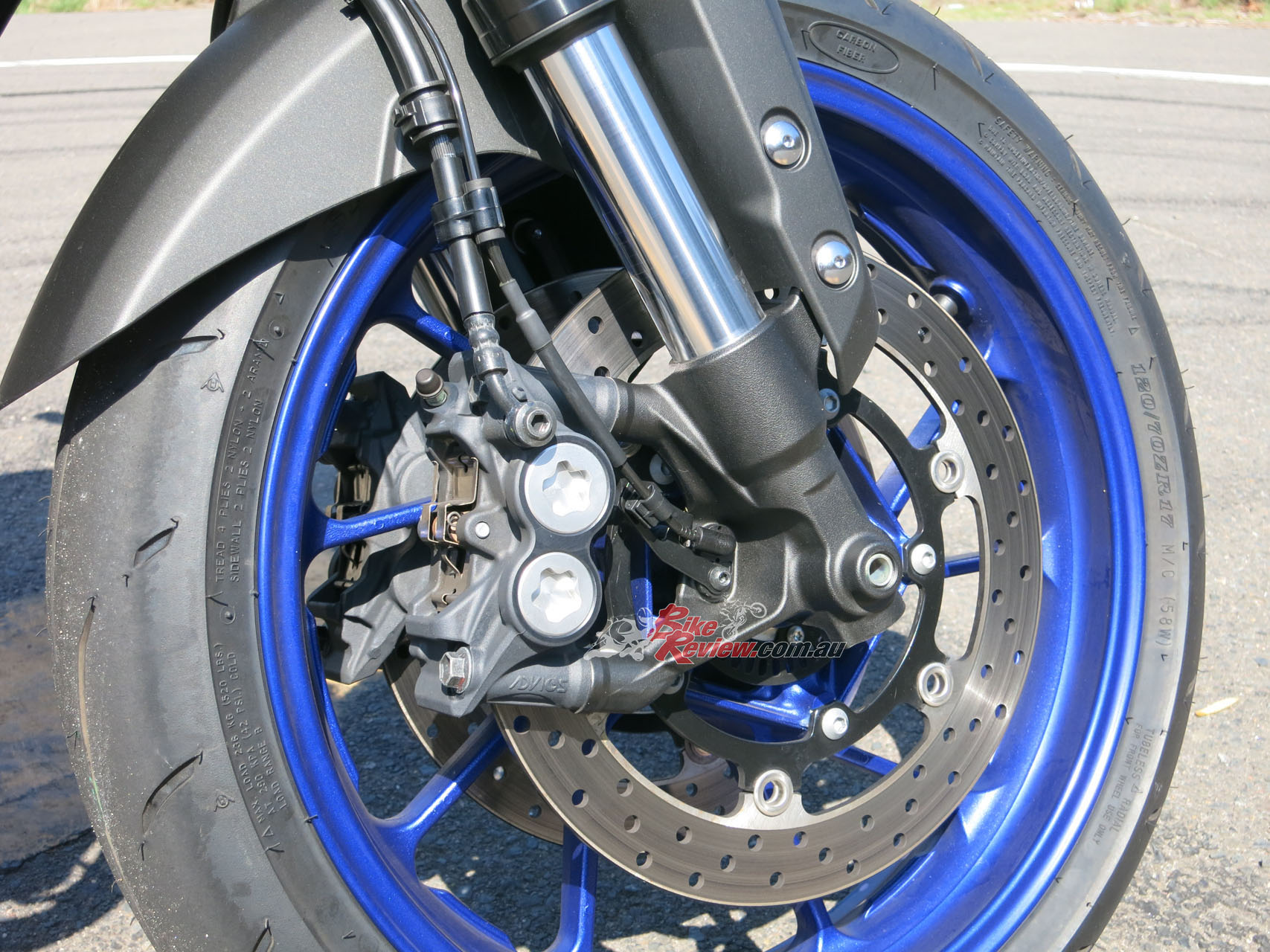 Brakes: Front: Four-piston radial-mount calipers, 298mm stainless steel rotors.