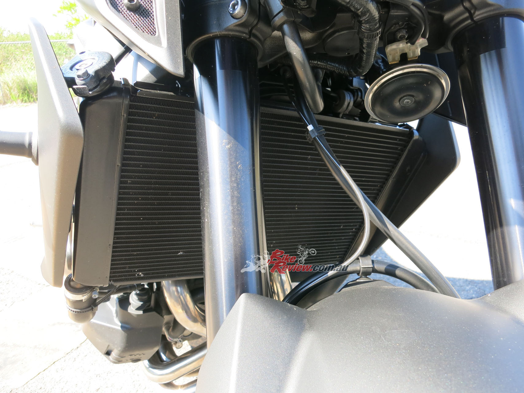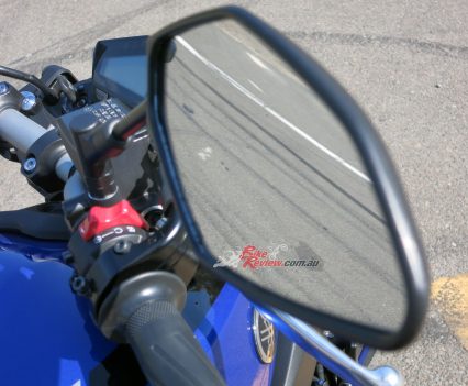 The mirrors give a nice view and I adjust them, pull in the clutch and select first. Clunk! Wow. This bike is low km, so I will give it some slack, but that is a serious bang into first gear (it doesn’t subside throughout the test period either).