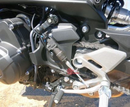 The new number plate holder and rear hugger replace the outgoing conventional fender at the back. Our press bike was not fitted with pillion pegs, which is why the rear looks so clean. There is a quickshifter now, too, making the bike even more fun!