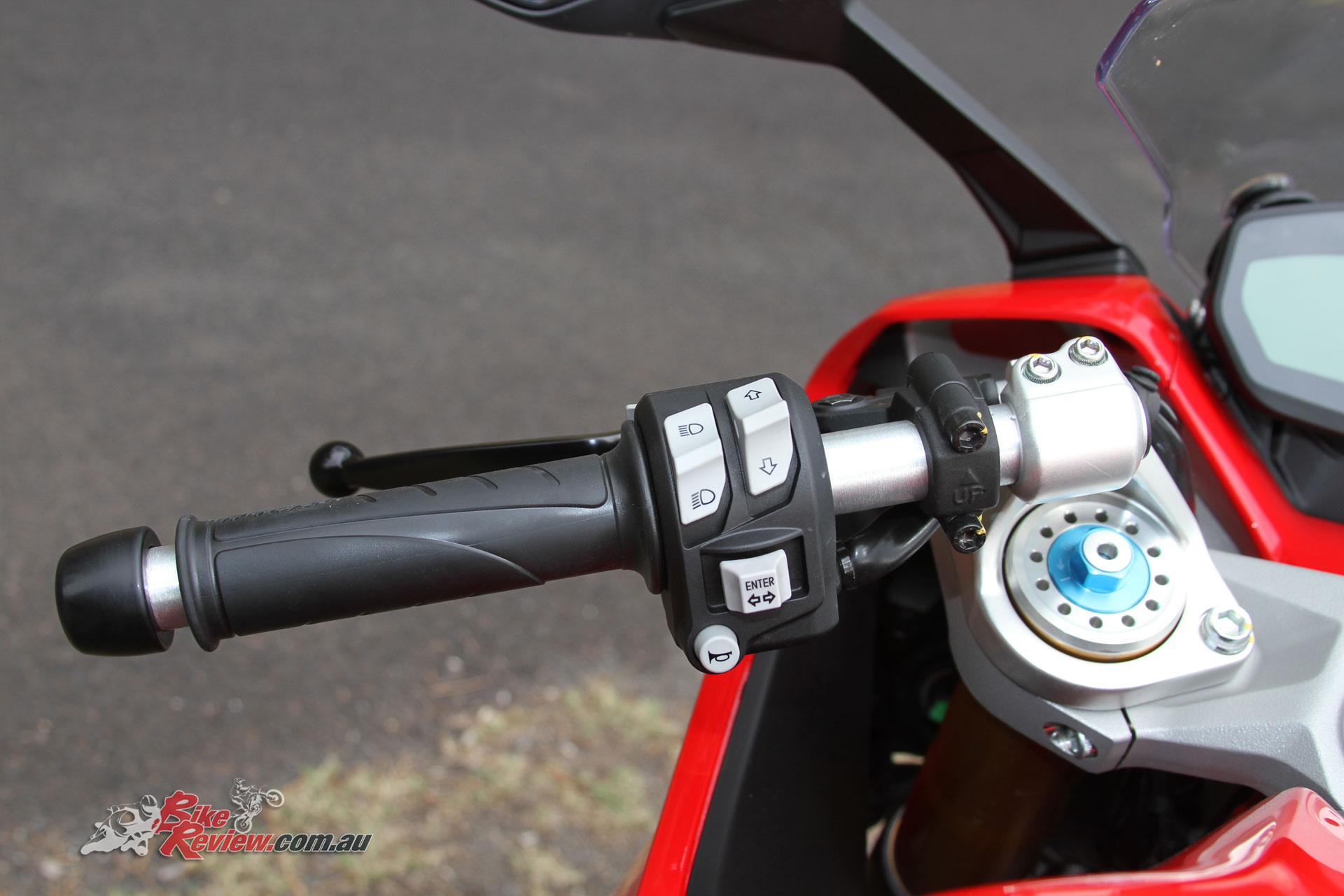 The Brembo brake system is great, and backed by Bosch ABS, with nice bite on the rear and great strength on the front, with a proper Brembo radial master-cylinder fitted. Switchblocks on the ‘bars are also easy to use, although the mode switch/menu button sharing a function with the indicator cancel was a bit strange, especially when you then used an up/down toggle above it to then move through the menu or modes. Changing modes on the move does require the throttle to be closed but it’s easy enough.
