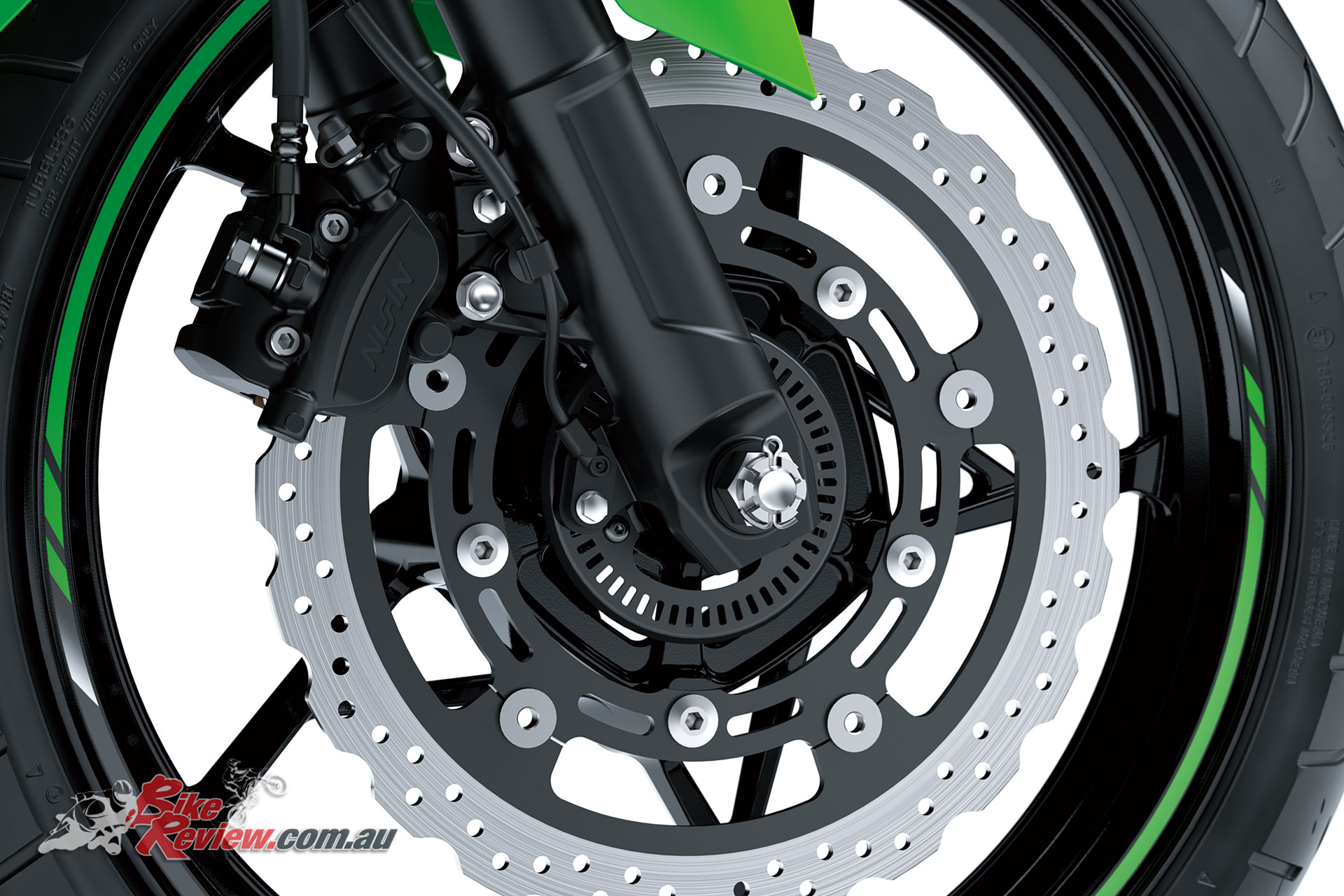 Brakes: Single Nissin 310mm semi-floating front disc, two-piston caliper, Nissin 220mm rear disc, two-piston caliper. Nissin ABS
