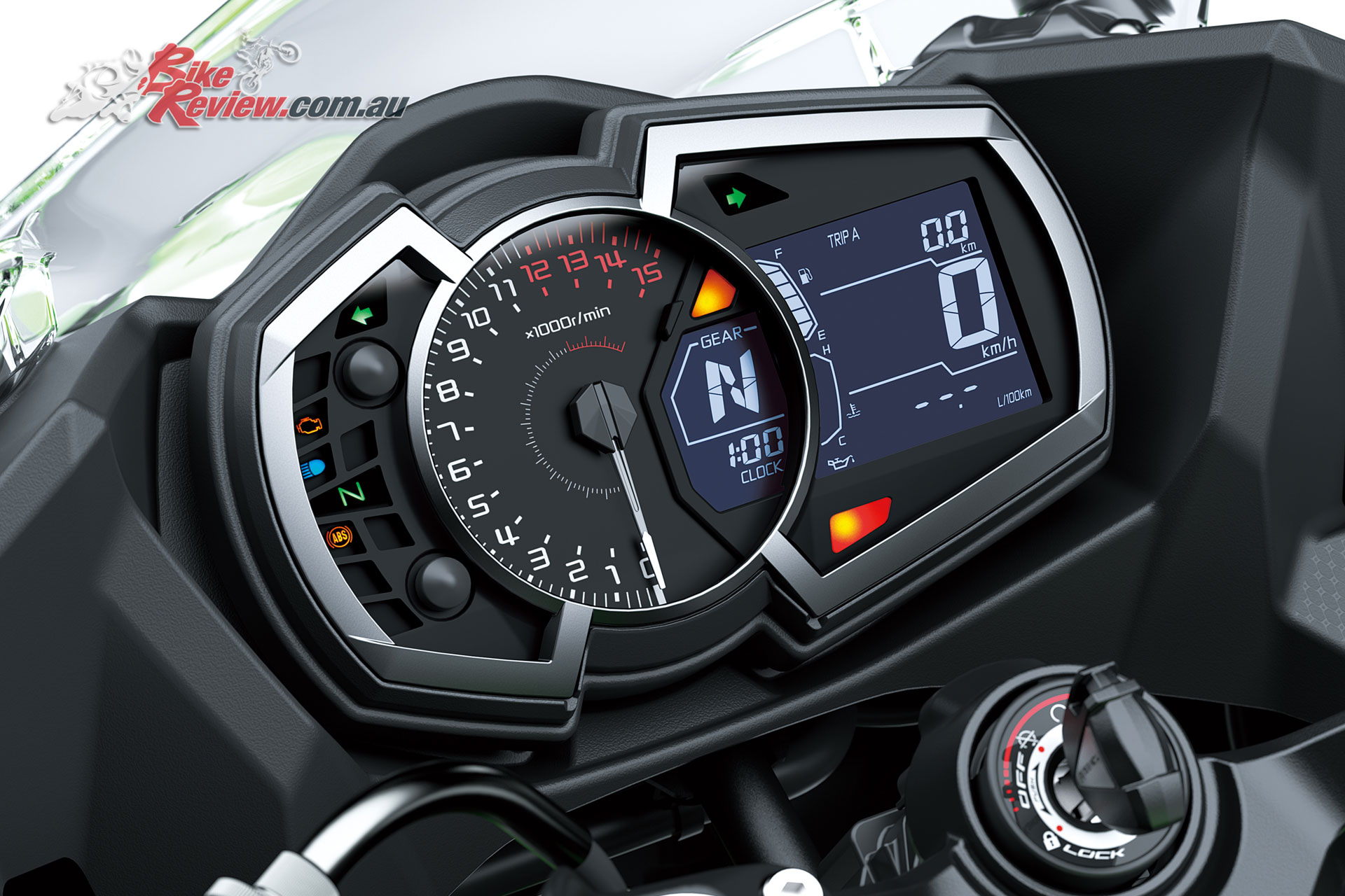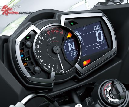 Instruments: Analogue tachometer, LCD speedometer, gear position indicator and multifunction display