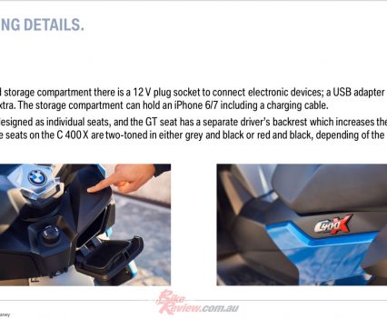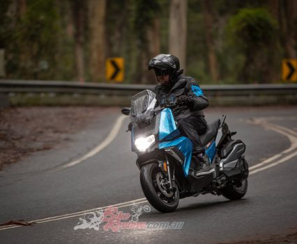 Just bought one of these (C400X) and I’m really impressed. I bought it in Albury and rode it down to Melbourne on a very wet day, it’s very stable at speeds of around 115 km/h and lots of grunt to get away from lights quickly. I can also carry a pillion with ease. There’s a lack of accessories at the moment as the scooter is newly released. As I’ve often said, these should be a lot more popular in Australia than they are. A 150 bhp+ sports bike is wasted on our roads.
