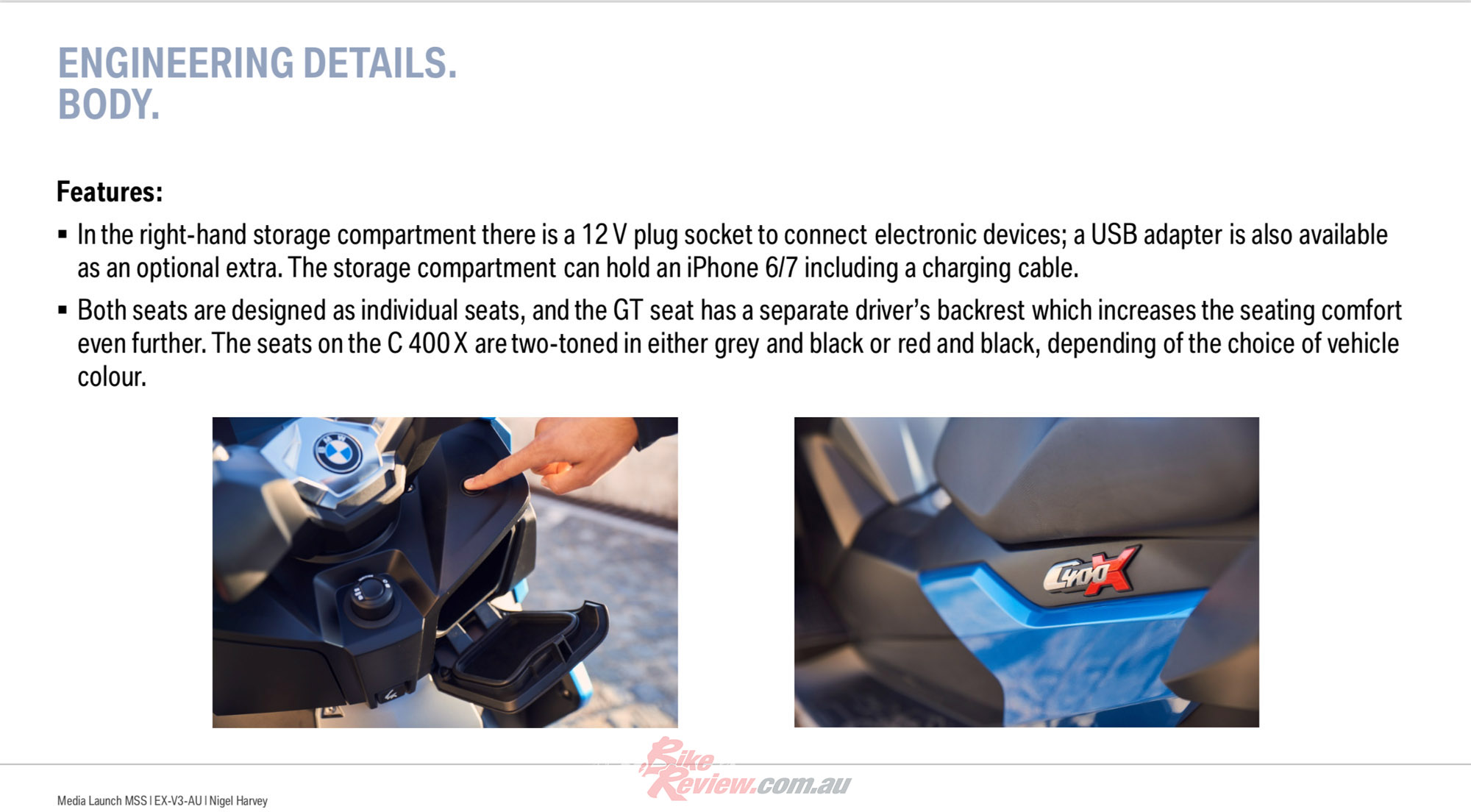 BMW Motorrad Australia Marketing Manager, Nigel Harvey, explains the technical highlights of the C 400 models…