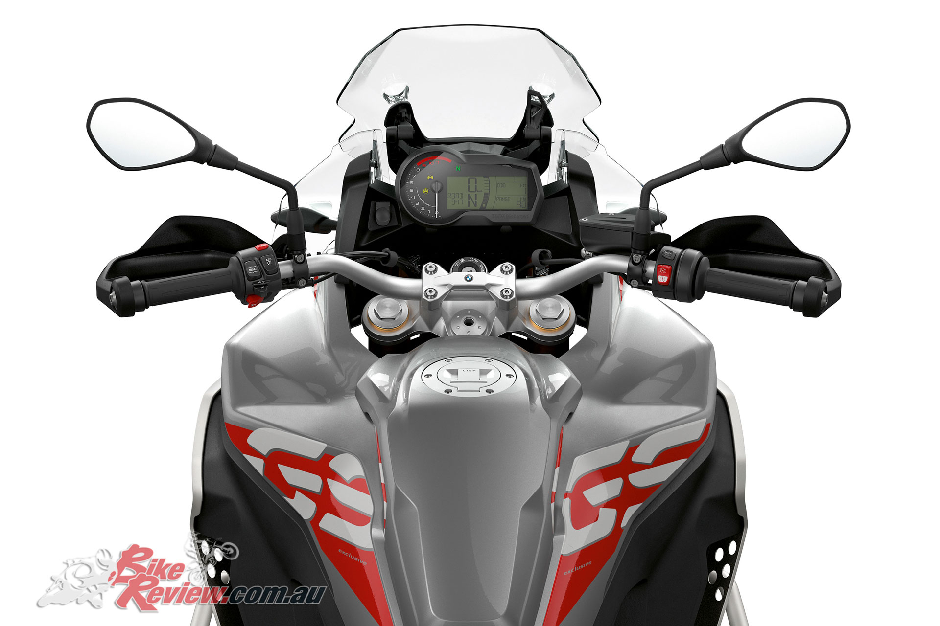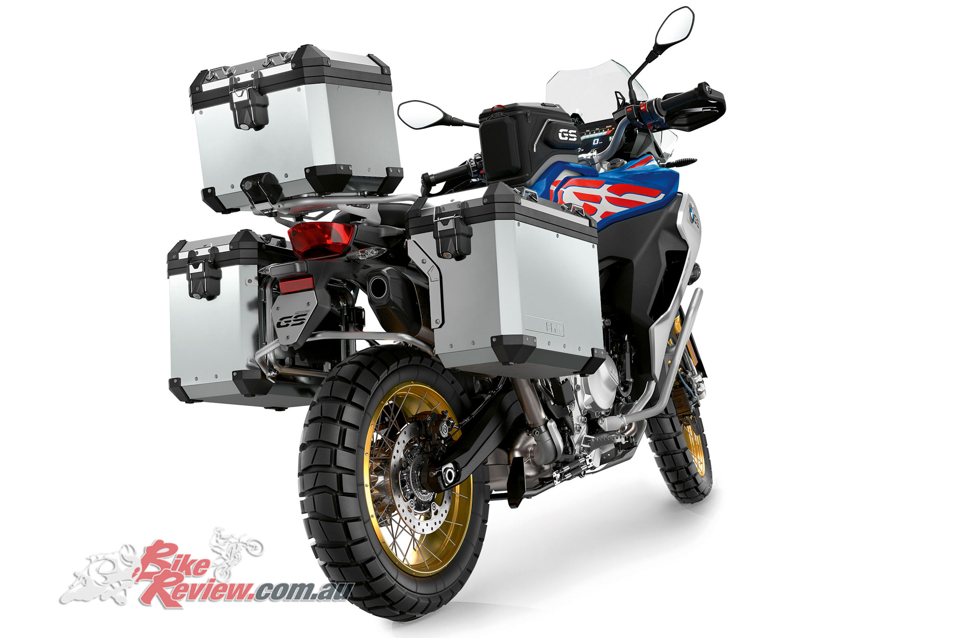 Key differences for the F 850 GS Adventure include a larger 23L fuel tank, which increases the range to around 550km, larger two stage adjustable height screen and hand guards for improved wind protection, wide enduro footpegs, comfort seat, engine protection bars and a stainless steel luggage rack.