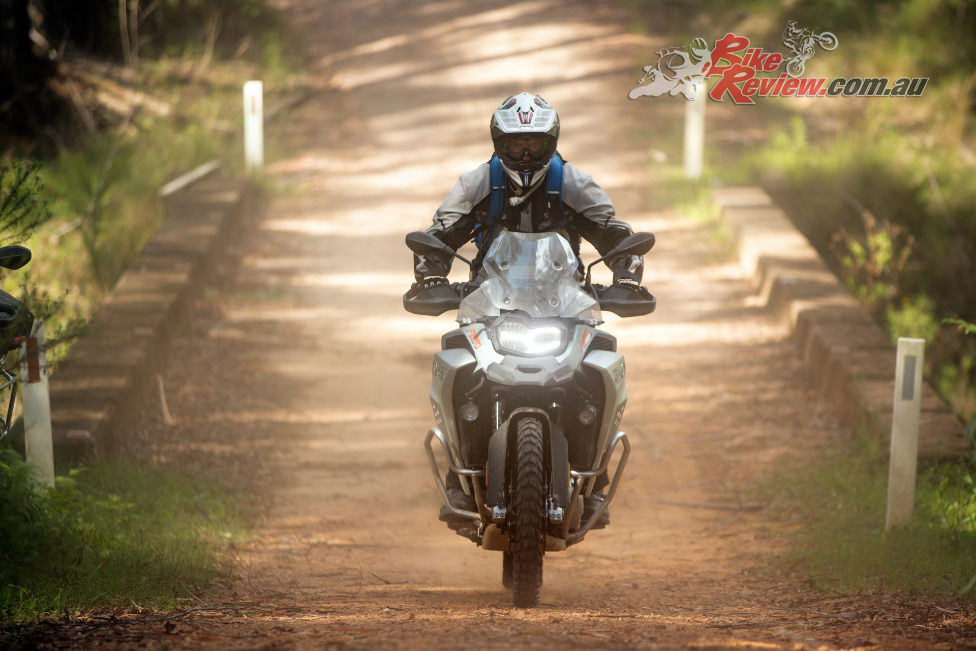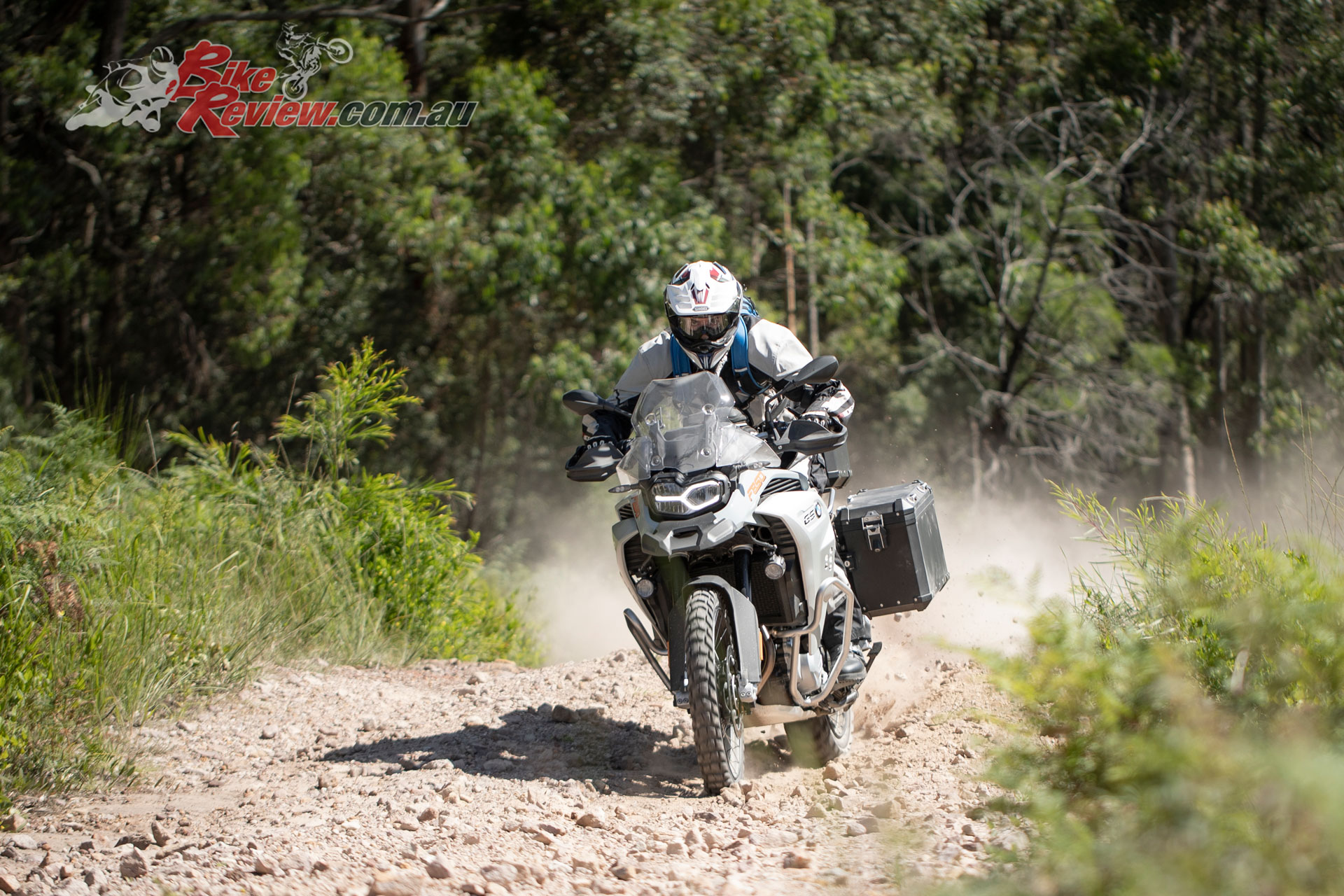 Through single trail and steep hill climbs and descents the higher centre of gravity makes itself felt, and it’s a more difficult package to handle in these conditions than the standard model, however I’d still much rather be on the F 850 GS Adventure in these conditions than any of the R 1250 GS range. The suspension is well set up for the heavier weight in most conditions, however the forks and shock will bottom out if you hit larger obstacles at speed, which is to be expected of a bike of this size and weight.