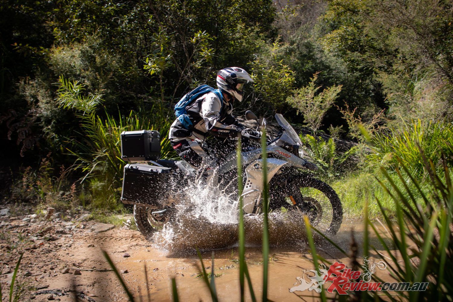 The performance of the chassis and suspension in more open, high speed conditions is still very neutral and stable, and I had masses of fun sliding and drifting this bike through the fire trails, and jumping table drains, even with a full kit of hard panniers on board.