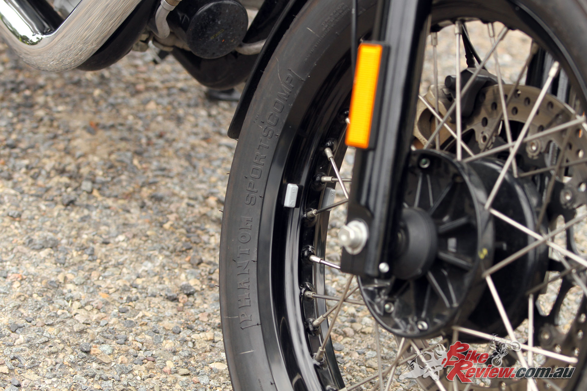 Wheels & Tyres: 36 spoke alloy rim 2.50 x 18in, 36 spoke alloy rim 3.50 x 18in, Pirelli Phantom 100/90-18, 130/70-18.