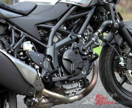 That same old SV650 motor that first arrived in 1999 in carby version has been refined and re-refined over the years to become a stunning powerplant. It was always good but now it is really good thanks to revisions over the three major generations of SV650 (1999-2002, 2003-2012, 2016-present – check out our 2017 SV650 LAMS review here).