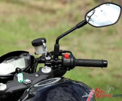 There’s a lot of grip available and impressive feel from the front-end. It’s one of those bikes that goes where you look and gives such a confidence-inspiring level of feedback that you can’t help but enjoy the ride. The bike likes a fast entry and to carry corner speed through the turn, with the only limitation being ground clearance, but that is a fair way over before the sparks fly… The OEM tyres a fantastic and I rode from stone cold on a cool day and I had full trust in the tyres from the get go. When pushing on the smooth, fast sweepers, the forks feel well sprung and damped, while the back is well sprung and control is good enough for the job. Likewise over the rough stuff during the course of my test and conditions I found the basic set-up to be a great compromise for overall versatility and I didn’t touch the preload settings. Very impressive suspension set-up by Suzuki.