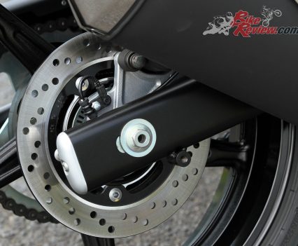 Brakes: Nissin ABS, dual 290mm front rotors, two-piston Tokico calipers, single 240mm rear rotor, single-piston caliper