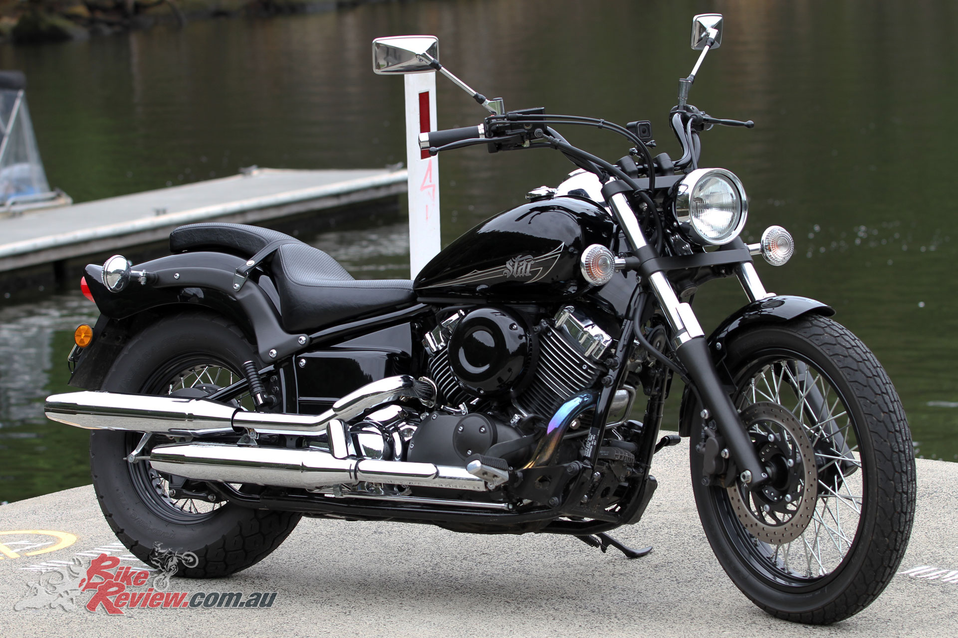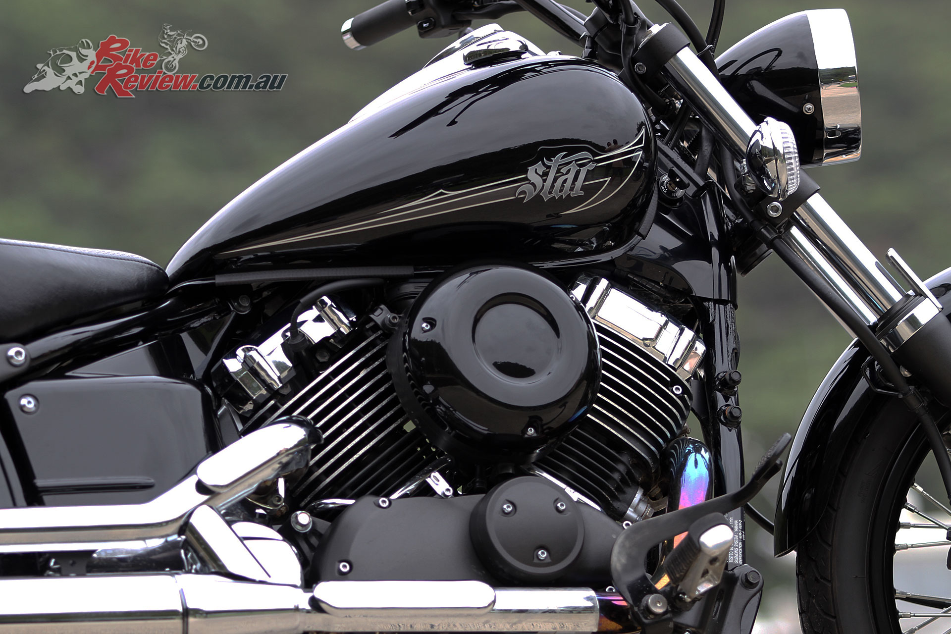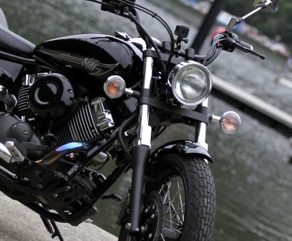 The Yamaha V-Star 650 Custom (XVS650) is a fairly traditional cruiser offering with ‘Raven’ paint punctuated by chrome
