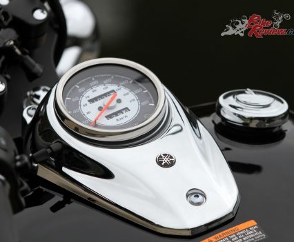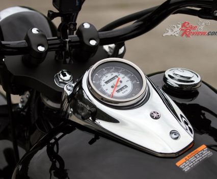 Having just received the bike from Chris Dobie at Yamaha HQ in Sydney I’d heard that the bike had a choke, but on a warm summer’s day had not realised it was on, that was until the bike started idling at about 3000rpm, which for a cruiser was well above the norm. This left me scrambling for the choke which is located under and towards the rear of the tank, inside your left leg.