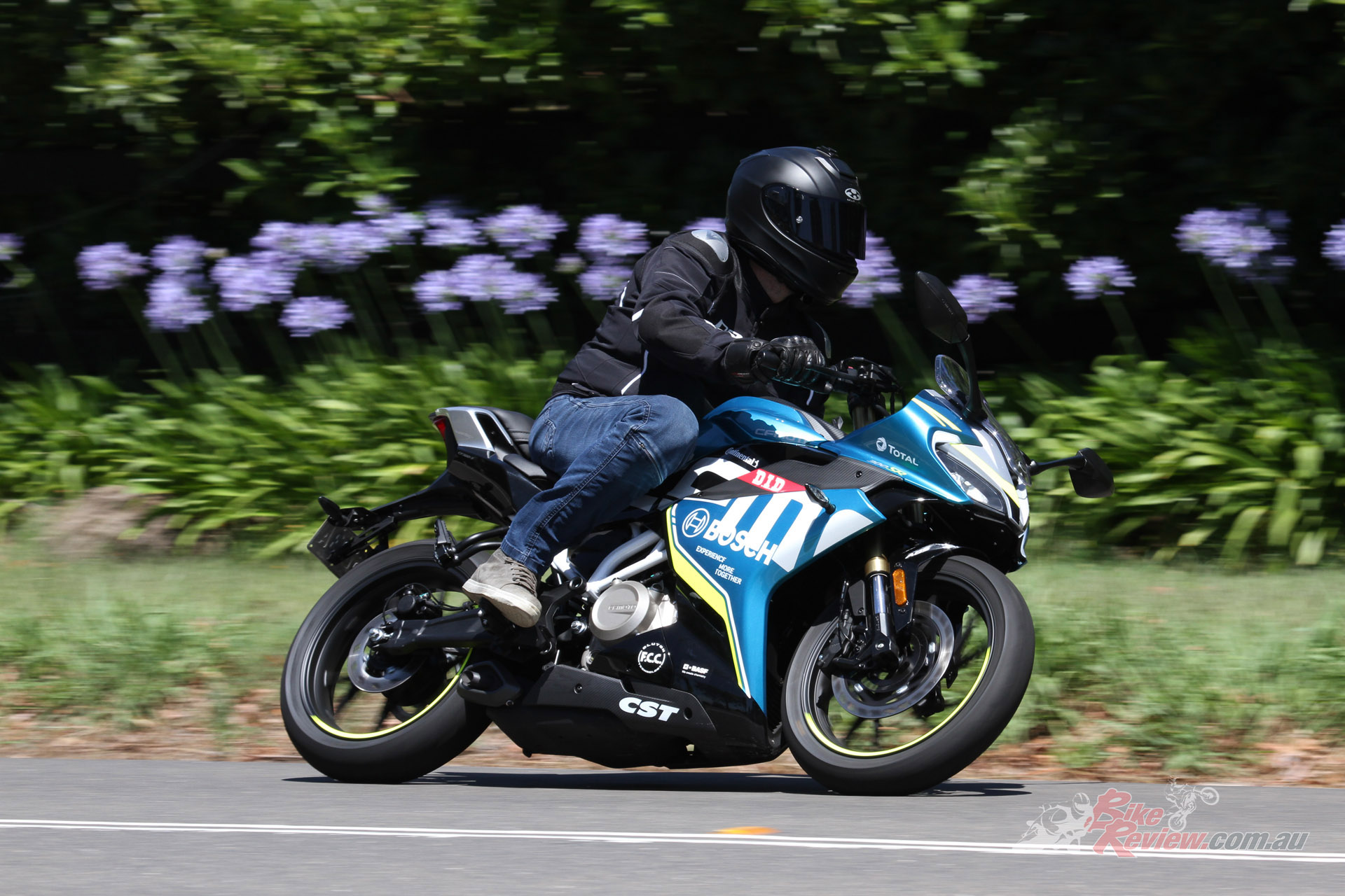 The CST rubber proved to warm up well and was nice and sticky, encouraging corner speed exploration and a general carefree approach to utilising the quick handling. The ABS equipped brakes, which do not feature any lever adjustment, did improve in initial bite, providing good stopping power and never feeling like fading, but still lacked in feedback. The Continental ABS is a bonus.