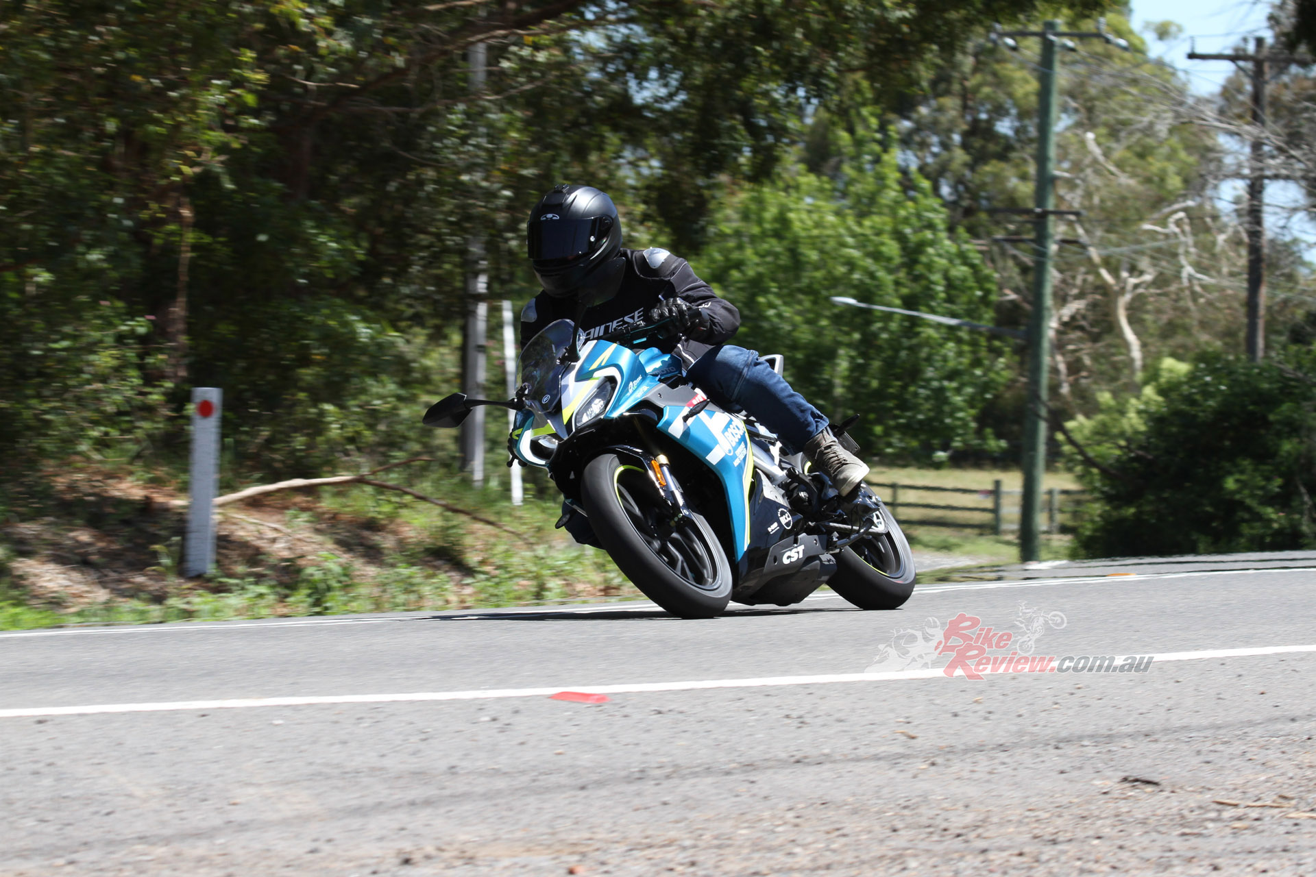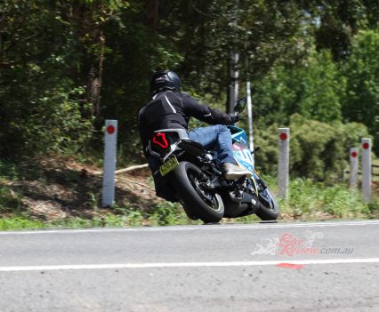My first and final ports of call are a 4km string of generous corners that I traverse multiple times when safe and quiet to do so. My first outing had me cautious and not so much digging the feel of the bike, to be honest. That changed hugely over the course of the test, however, and my last jaunts on that stretch had the little single pulling well from as low as 3000rpm and revving quite rapidly to redline (even though the factory forbids this for the first 1000km – sorry!) with me able to easily lay it over with much confidence in the handling.