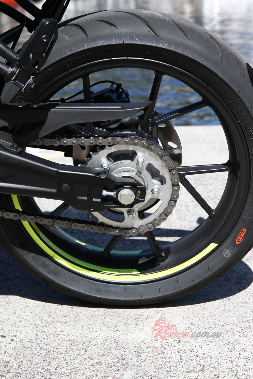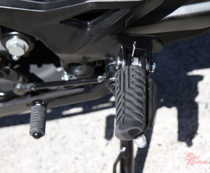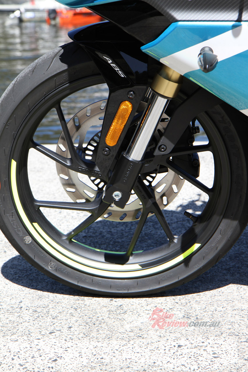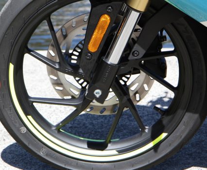 The engine features a balance shaft to keep vibration down and reduce mechanical (and rider) fatigue. A Bosch EFI system works in unison with the intake manifold and combustion chamber designs to provide optimal fuel burning for efficiency and low emissions. The exhaust is a neat underslung MotoGP style unit that provides a decent note. A six-speed ‘box and cable operated wet clutch finish the drivetrain off.