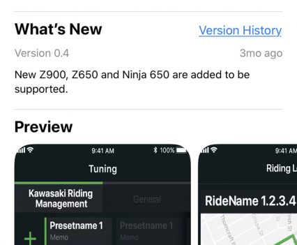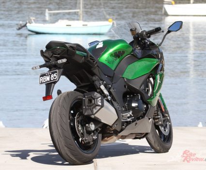 The 1043cc liquid-cooled in-line four-cylinder includes an Assist and Slipper clutch, and has an advanced electronics system derived from that found on the ZX-10R and includes the KCMF (Kawasaki Cornering Management Function), Kawasaki’s IMU-enhanced electronics package.