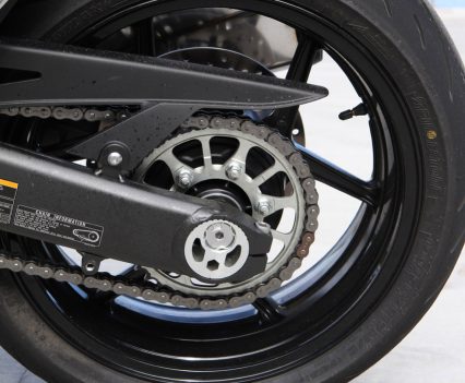 The machined monobloc calipers feature an alumite1 coating and are laser-etched with a Kawasaki logo, adding to the bike’s high-quality sporty looks. The rear brake features a single piston, pin-slide caliper gripping a 250mm disc.