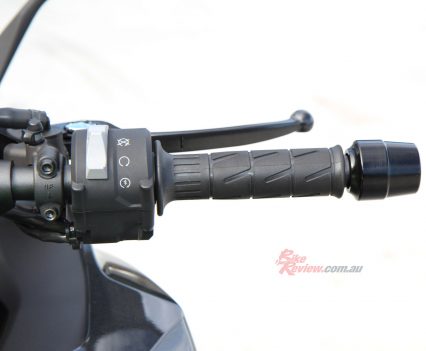 The dash is easy to navigate, the left switchblock has the scroll up or down buttons and a select button as well as a cancel/return button. You can set shift lamp, turn KQS on or off, choose Power Modes and KTRC, turn the immobiliser light off, change the time and units (depending on country) and there is a service section to check on maintenance. It also connects to your Smartphone via BT and the App.