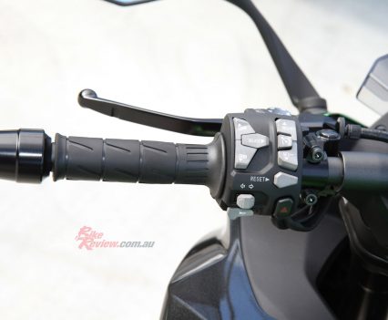 The KTRC (Kawasaki Traction Control) offers three levels of adjustability and can be turned off, while Power Modes offer Road, Sport, Rain and Rider (Custom).