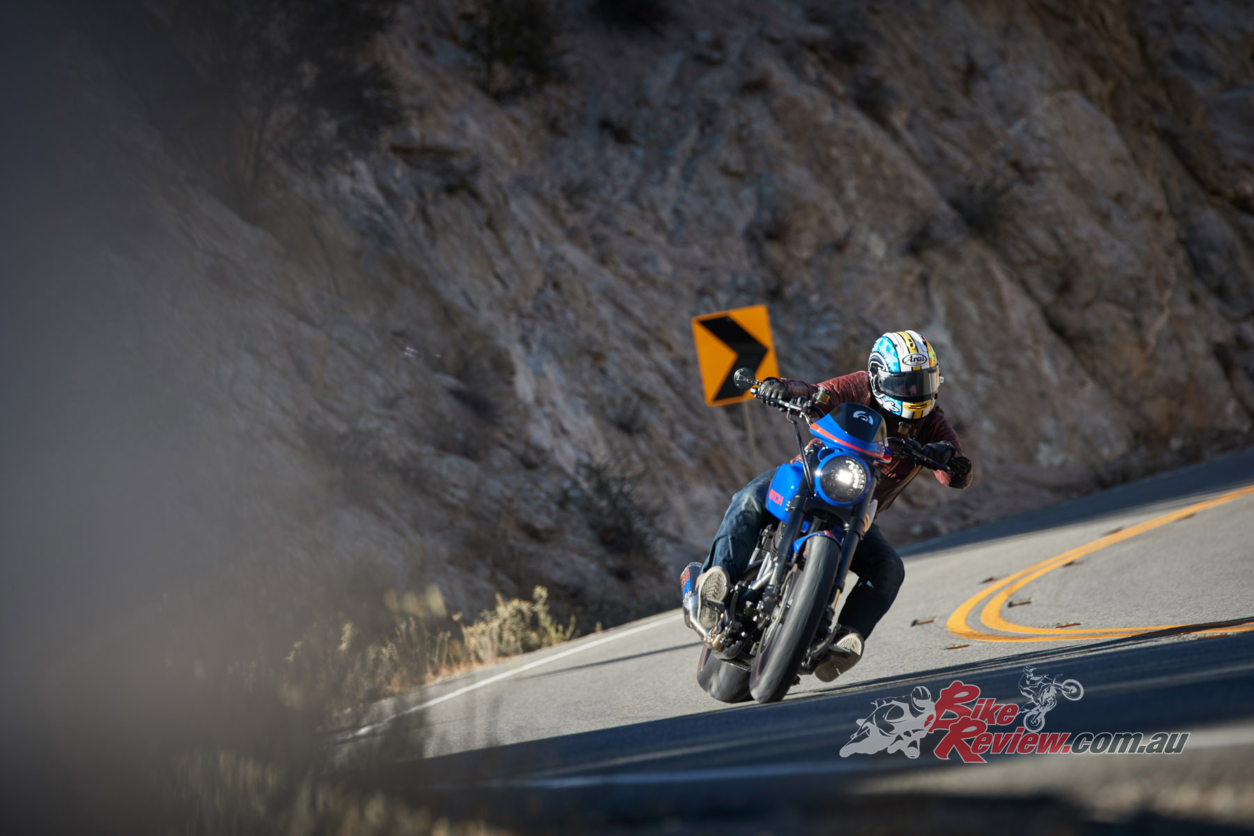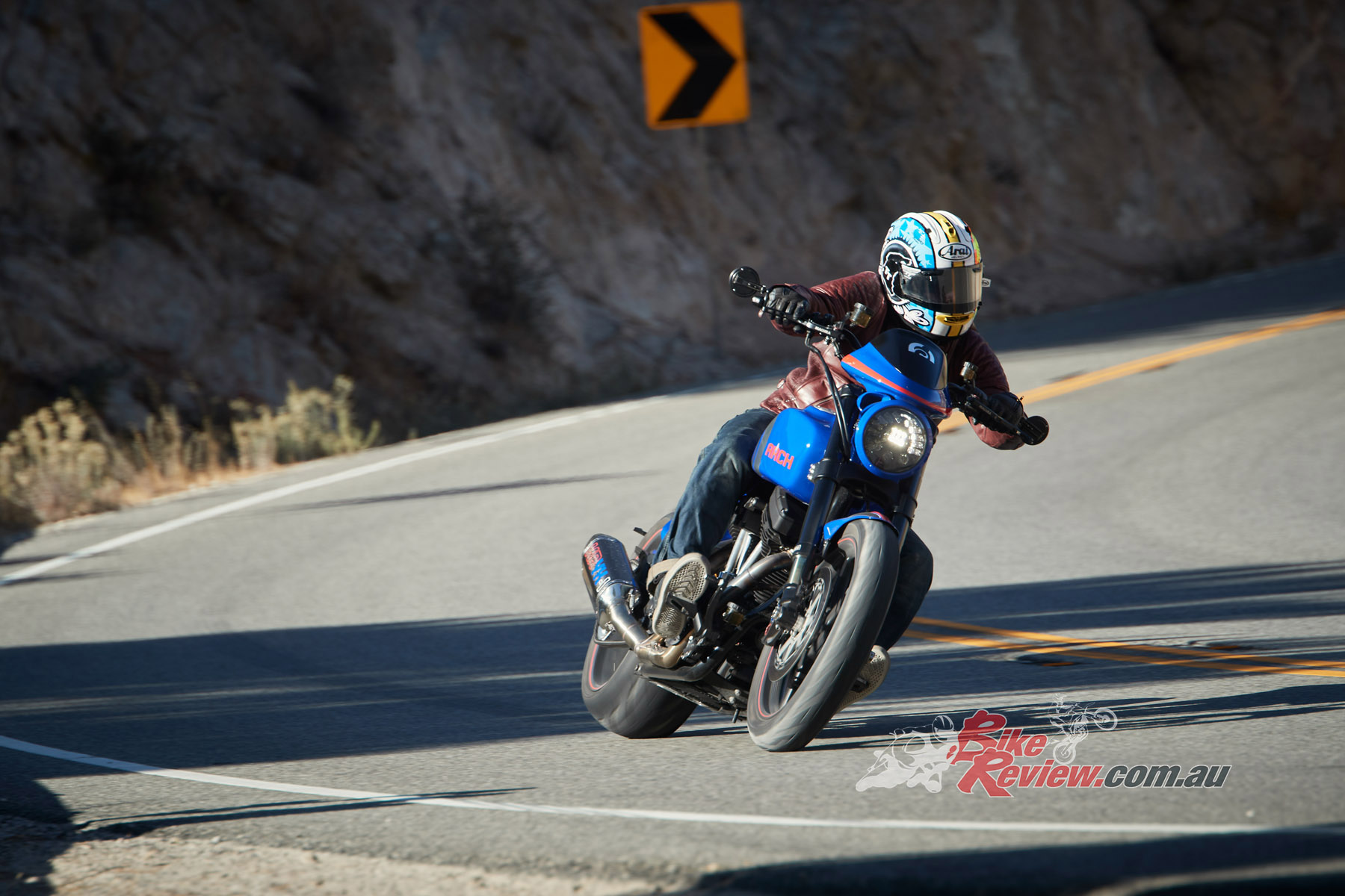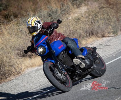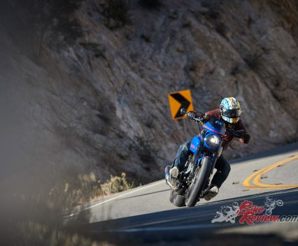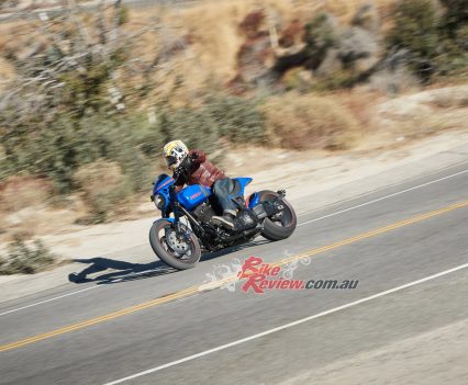 As we leave LA and head for the hills and the famous Angeles Crest, a series of endless curves which goes on for 80km and more, I’m salivating with anticipation, waiting to push the sporting potential of the new model. As you’d imagine with a wide rear tyre, long wheelbase and a lazy raked out front-end, stability was never going to be in issue.