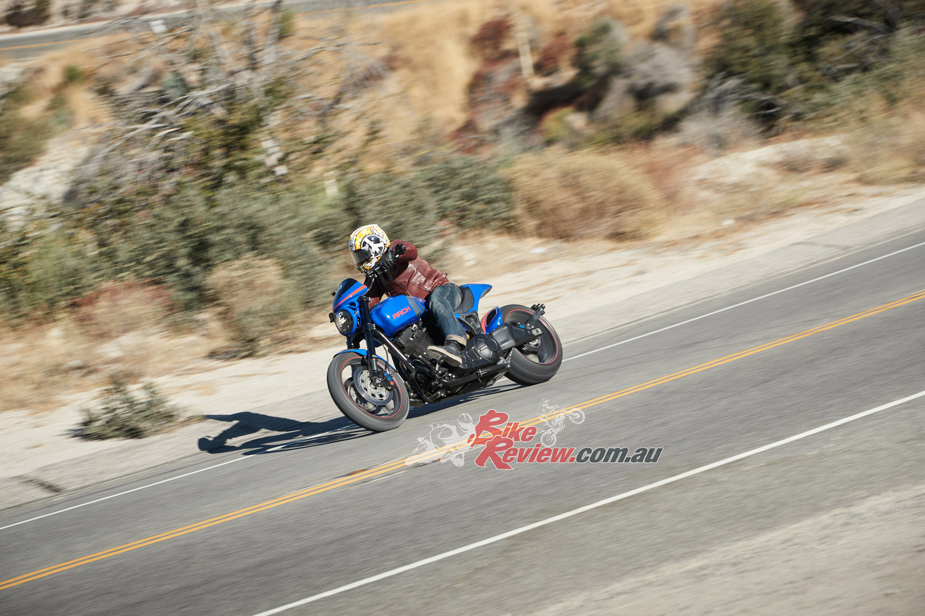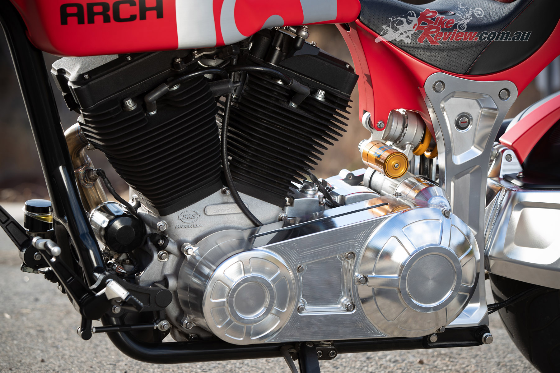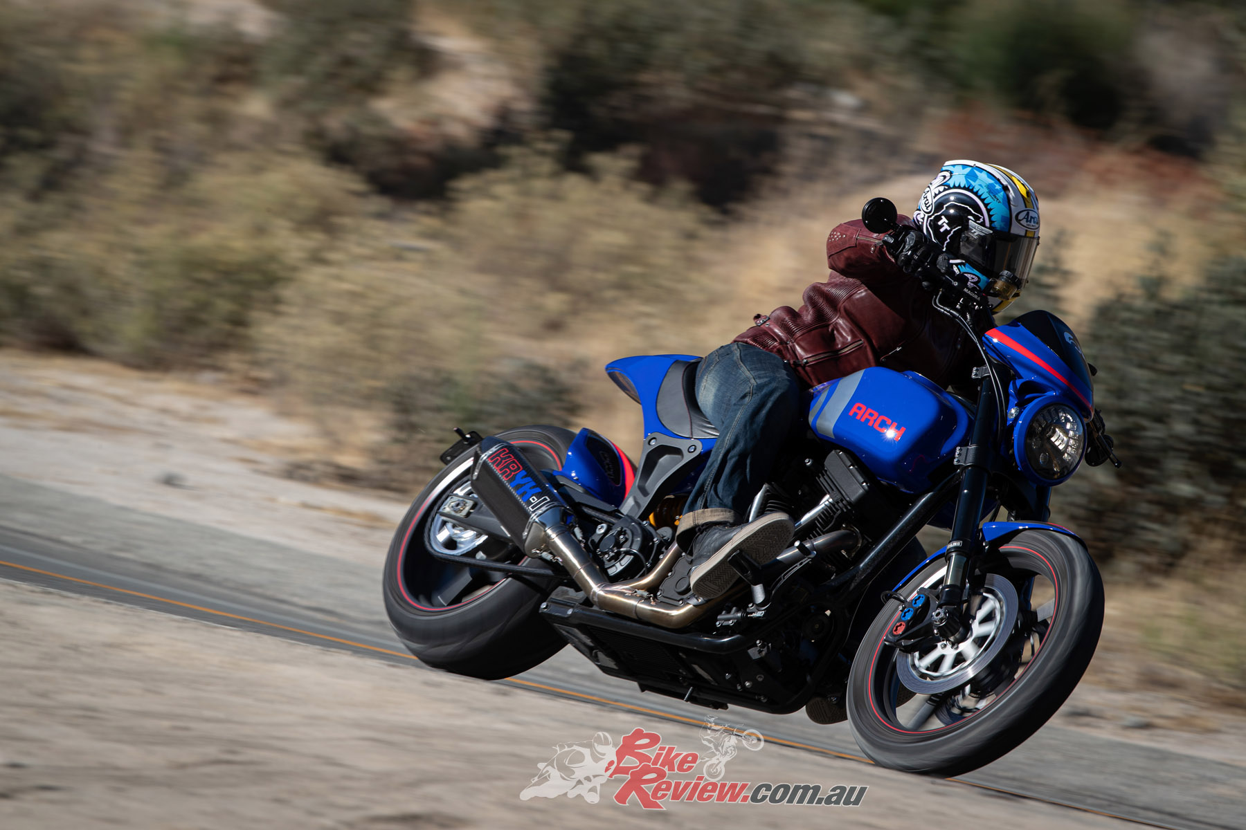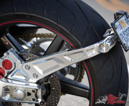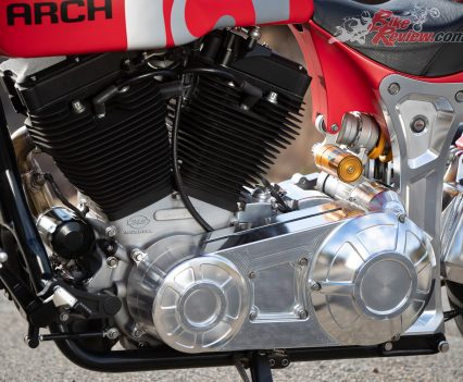Even in LA, where celebrities and supercars are around every corner, the ARCH turns heads at every intersection. The two-into-one Yoshi’ exhaust has a charismatic bark, while on wide throttle openings you can hear the K&N airfilter gasp for air. The bike’s song is distinctive and soulful without being offensive, popping on the overrun too, but you can certainly leave home without waking your neighbours.